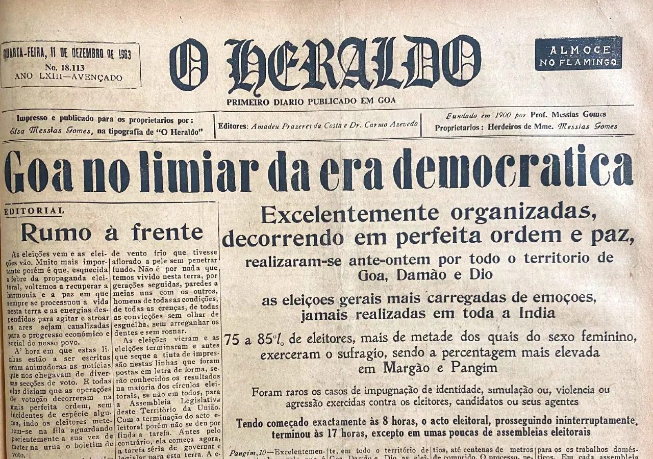 दयानंद बांदोडकर हे गोव्याचे पहिले मुख्यमंत्री होते ('ओ हेराल्डो', पोर्तुगीज भाषेतील वृत्तपत्र, दिनांक 18 डिसेंबर 1963). (फोटो - www.centrallibrary.goa.gov.in)