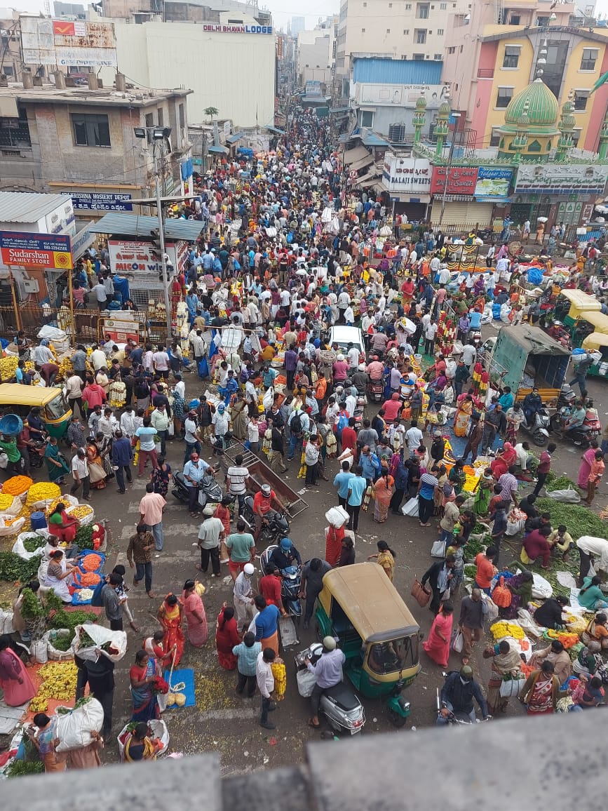 हे चित्र आहे कर्नाटकातील बंगळुरूच्या बाजारातील. जिथं लोकांनी पुजेचं सामान खरेदी करण्यासाठी एकच गर्दी केली.