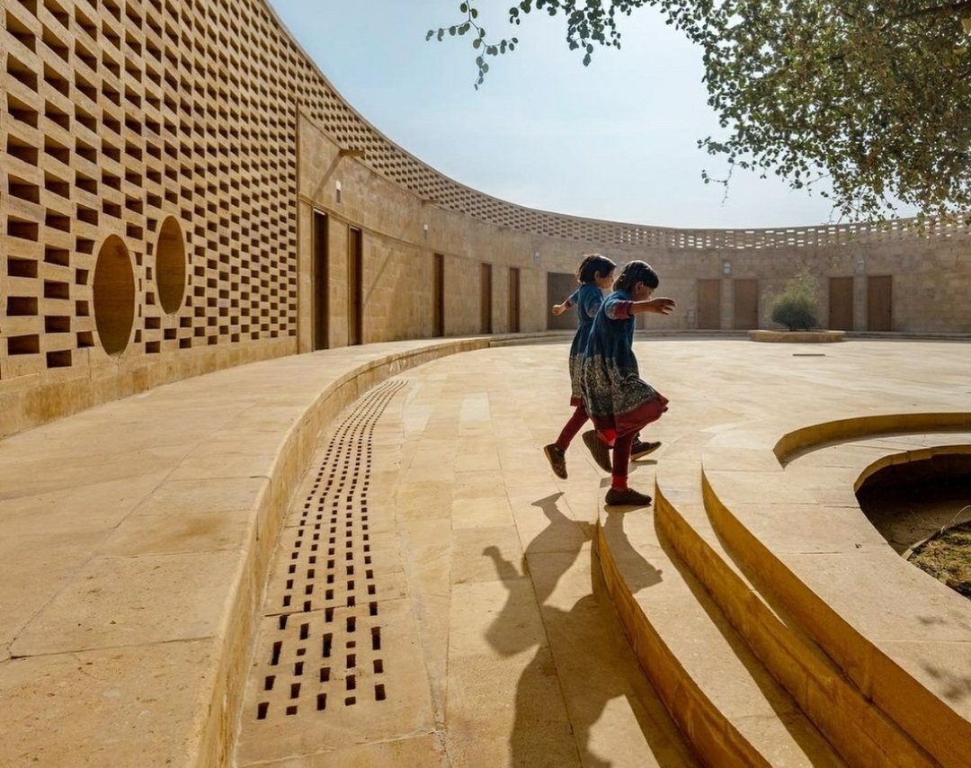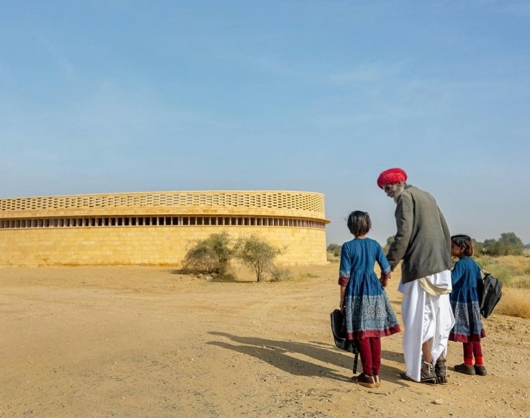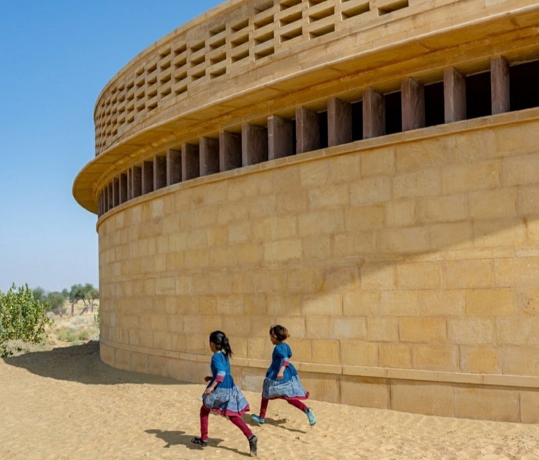 राजस्थानातल्या थर वाळवंटाच्या मध्यभागी ही अंडाकृती आकाराची (Oval Shaped Building) इमारत आहे. न्यूयॉर्कच्या वास्तुविशारद डायना केलॉग (New York Architect Diana Kellogg) यांनी डिझाइन केलेली एक नवीन शाळा आहे यावर विश्वास बसेल?