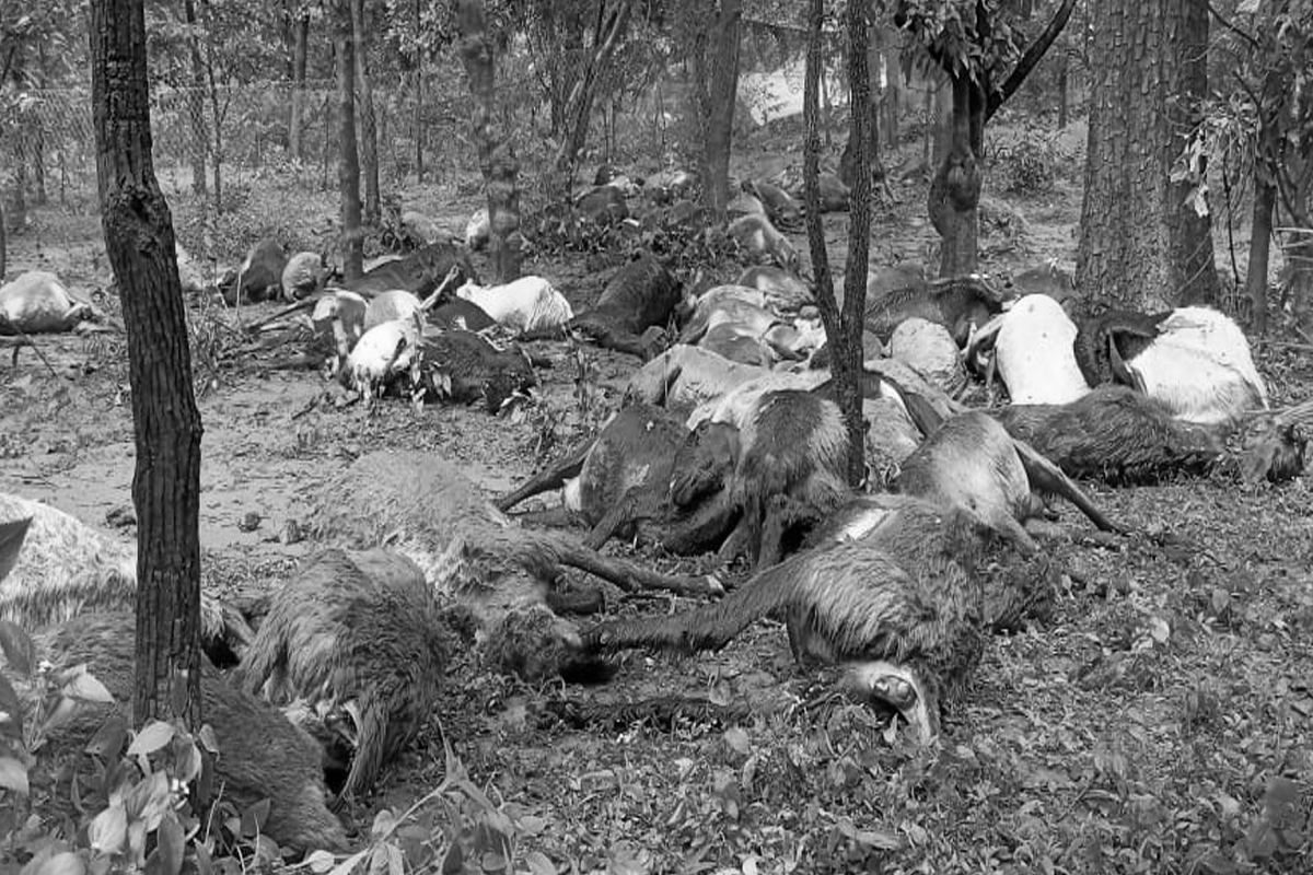 गडचिरोली, 10 सप्टेंबर : राज्यभरात पावसाने धुमशान घातले आहे. गडचिरोलीमध्ये (gadchiroli) पावसाने कहर केला आहे. जिल्ह्यातील कोरची तालुक्यात जंगलामध्ये वीज कोसळून (lightning strike) शंभरहून अधिक शेळ्या (goats) आणि मेंढ्यांचा मृत्यू झाल्याची घटना समोर आली आहे. एकाच वेळी इतक्या मोठ्या प्रमाणात शेळ्यांचा मृत्यू झाल्यामुळे हळहळ व्यक्त केली जात आहे. मिळालेल्या माहितीनुसार, कोरची तालुक्यात मसेली गावानजीक असलेल्या सावली इथं ही घटना घडली आहे. ही घटना मध्य रात्री 1 वाजेच्या सुमारास घडली. जंगलात वीज कोसळून शंभराहून अधिक शेळ्या व मेंढ्यांचा मृत्यू झाला आहे. IND vs ENG : टीम इंडियाचे खेळाडू का घाबरले? कार्तिकने सांगितली Inside Story कोरची तालुक्यात दरवर्षी राजस्थान व गुजरात येथून काही मेंढपाळ शेळ्या व मेंढ्या घेऊन येत असतात. यंदा हे मेंढपाळ दोन डेरे घालून वसलेले आहेत. त्यापैकी एक डेरा बेळगाव परिसरात तर दुसरा डेरा सावली परिसरात आहे. दोन्ही डेऱ्यांमध्ये 7-8 परिवारांचा समावेश आहे. ‘खाईल तर तुपाशी’, वाईन शॉप फोडायचा अन् फक्त ब्रँडेड बाटल्या चोरायचा, पण… मध्य रात्री 1 वाजेच्या सुमारास सावली परिसरात विजेच्या कडकडाटासह मुसळधार पाऊस पडू लागला. अशातच अचानक डेऱ्याजवळच वीज कोसळल्याने जवळपास 110 शेळ्या व मेंढ्या जागीच ठार झाल्या. यामुळे मेंढपाळांचे सुमारे 5 ते 6 लाख रुपयांचे नुकसान झाले आहे. एकाच वेळी इतक्या मोठ्या प्रमाणात शेळ्या आणि मेंढ्याचा मृत्यू झाल्यामुळे परिसरात हळहळ व्यक्त केली जात आहे.