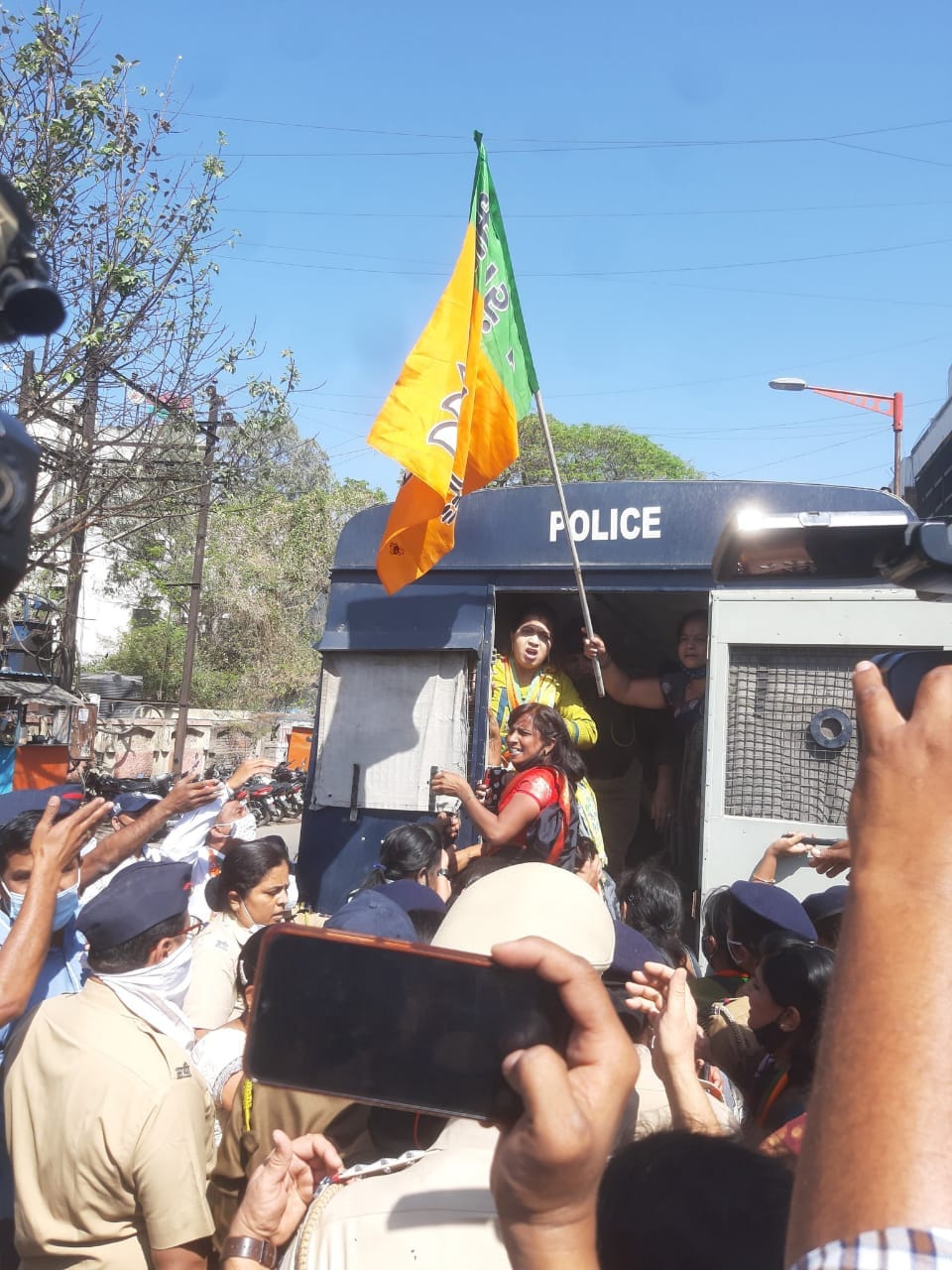 वनमंत्री संजय राठोड यांनी राजीनामा दिल्याशिवाय शांत राहणार नाही असा इशाराच या महिला मोर्चाकडून देण्यात आला आहे. मुलुंड टोलनाक्याजवळ हे आंदोलन सुरू असताना पोलिसांनी घटनास्थळी पोहचून भाजपच्या महिला कार्यकर्त्या आणि पदाधिकाऱ्यांना ताब्यात घेतलं