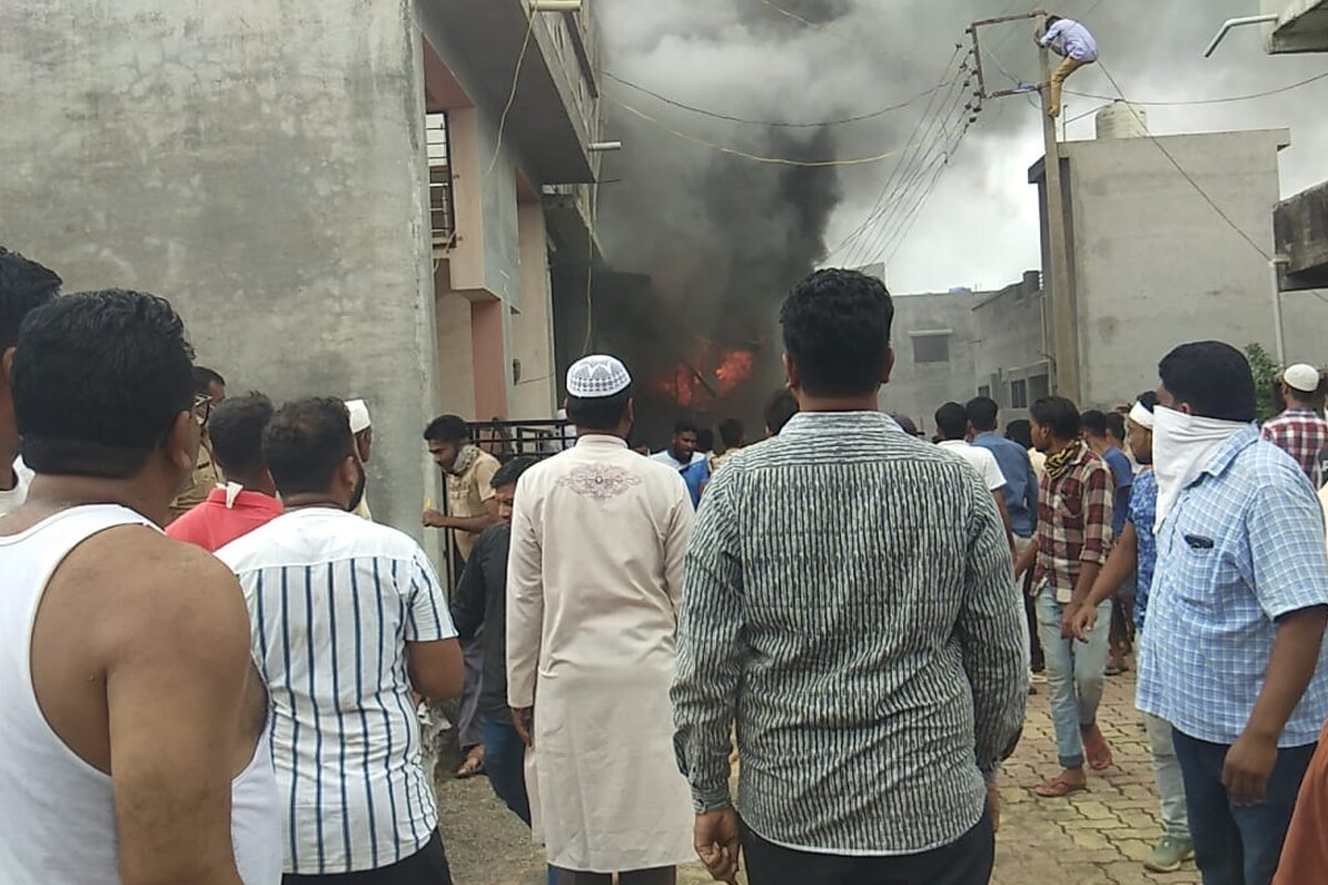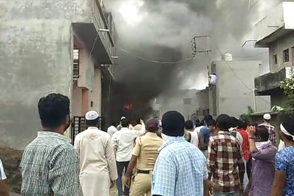 नंदूरबार जिल्ह्यातील नवापूर तालुक्यात विसरवाडी येथील न्हावी गल्ली परिसरात अवैध ऑइल बनविण्याचा कारखान्याला लागली आग. ऑईलची पॅकिंग केली जात असतानाच शॉर्टसर्किट होऊन ही आग लागल्याचं बोललं जात आहे. भरवस्तीत असलेल्या ऑईल दुकानात लागलेल्या आगीने रुद्र रूप धारण केलं असून आजूबाजूची घरे आगीच्या भक्षस्थानी सापडले आहेत. आग विझवण्यासाठी नवापूर आणि नंदुरबार शहरातून अग्निशमन दलाच्या गाड्या आल्या आहेत. आग आटोक्यात आणण्यासाठी शर्तीचे प्रयत्न सुरू आहेत. कारखान्यात ऑईलचे ड्रम्स असल्यानं आग आणखी भडकण्याची शक्यता वर्तवली जात आहे.