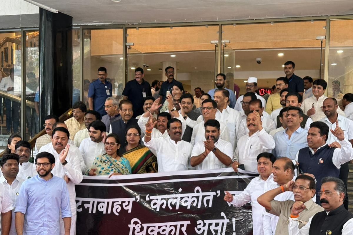 विरोधकांचं विधानभवनाच्या पायऱ्यांवर आंदोलन