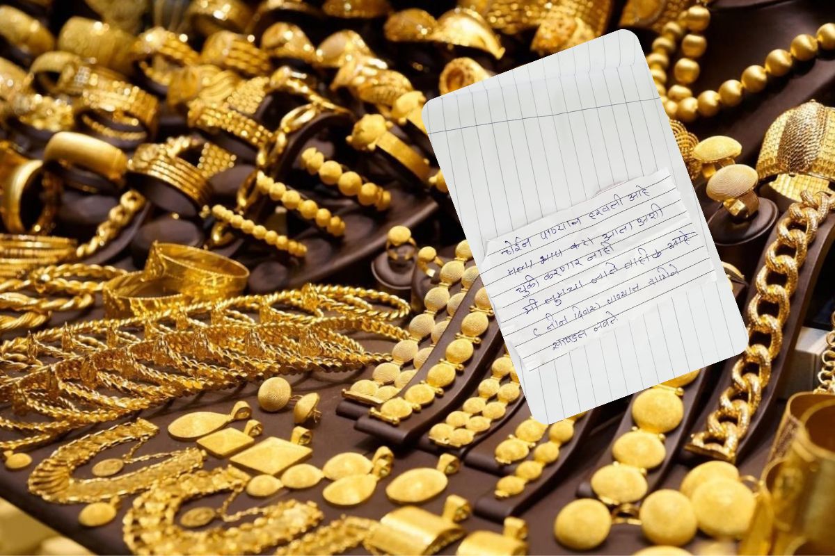 राहुल पाटील, प्रतिनिधी पालघर, 7 जून : घरफोडी करून तब्बल 9 लाखांपेक्षा अधिक किमतीचं चोरी केलेलं सोनं चोरट्याने परत केलं आहे. हे सोनं परत करताना चोराने चिठ्ठी लिहून माफीही मागितली आहे. पालघरच्या केळवे भागामध्ये ही घटना घडली आहे. माझ्याकडून अनावधानाने चूक झाली असू मला माफ करा, असं चिठ्ठीमध्ये चोराने लिहिलं. या आरोपीने फिर्यादी महिलेच्या माहेरच्या घराच्या ओट्यावर सोनं आणि चिठ्ठी ठेवली. हा प्रकार काहीसा अचंबित करणारा असला तरी पोलिसांच्या जनसंवाद अभियानाचं हे यश असल्याचं पालघर पोलिसांकडून सांगण्यात आलं आहे. या घटनेची परिसरामध्ये जोरदार चर्चा आहे. पालघर मधील केळवे येथील मांगेला वाडीत तांडेल दांपत्य मागील अनेक वर्षांपासून राहतात. 60 वर्षीय प्रतीक्षा तांडेल या गृहिणी असून त्यांचे पती ठकसेन तांडेल हे एका बँकेतील निवृत्त कर्मचारी आहेत. 31 मे रोजी तांडेल दाम्पत्यांच्या लग्न केलेल्या मुली माहेरी आल्याने जेवण करून हे सर्व कुटुंब घराचा दरवाजा बंद करून शतपावलीसाठी समुद्रकिनाऱ्यावर गेलं, मात्र घरी परतताच आपल्या घरात काहीतरी विपरीत घडल्याचं तांडेल दांपत्याला लक्षात आलं. कपाट उघडून बघितलं तर कपाटातील तब्बल 15 तोळं सोन चोरीला गेलं होतं . हे पाहून तांडेल दांपत्याच्या पायाखालची जमीन सरकली. आयुष्यभराची कमाई तांडेल दाम्पत्यांनी सोन्यात गुंतवणूक केली होती, त्यामुळे तांडेल दांपत्य हतबल झालं आणि त्यांनी केळवे पोलीस ठाण्यात आपल्या घरात घरपोडी झाल्याची तक्रार नोंदवली. फिर्याद मिळताच केळवे पोलिसांनी तपास सुरू केला . शतपावलीसाठी गेलेलं तांडेल दांपत्य हे अवघ्या 20 मिनिटात घरी परतल्याने या 20 मिनिटातच हा चोरीचा प्रकार घडला असून चोरी करणारा हा जवळपासचाच कोणीतरी असल्याचा संशय पोलिसांना बळावला, त्यामुळे पोलिसांनी परिसरातील नागरिकांना एकत्र बोलवत भावनिक साद घातली.