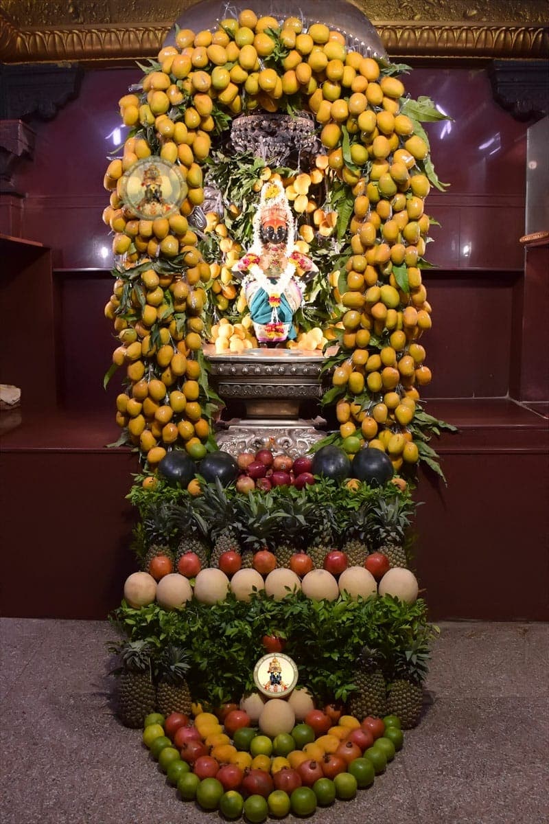 आज अक्षय्य तृतीया असल्याने श्री विठ्ठल रुक्मिणी मंदिरात हापूस आंब्याची आरास केली आहे. याठिकाणी प्रत्येक सणानिमित्त फुलांची सजावट केली जाते. पण सध्या आंब्याचे दिवस असल्याने सजावट करण्यासाठी आंब्याचा उपयोग केला आहे.
