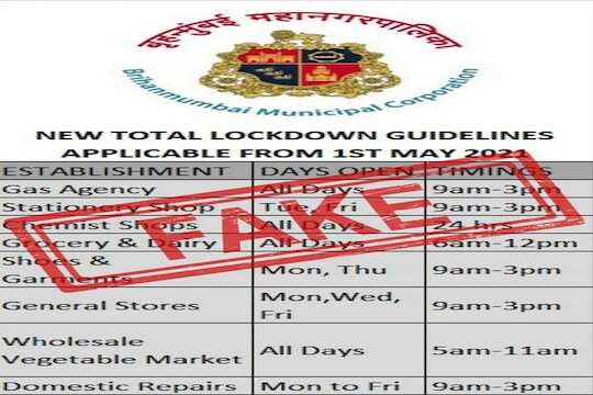 वाचा : अशी परिस्थिती देशात फक्त एकट्या मुंबईत; BMC ने जारी केली कोरोनाची आकडेवारी कोविड-19 चा प्रसार थांबवण्यासाठी महाराष्ट्र शासनाने काही निर्बंध आणि मार्गदर्शक तत्वे जाहीर केले आहेत. 1 मे 2021 पर्यंत लागू असलेले हे नियम आता 15 मे 2021 पर्यंत लागू असणार आहेत. यानुसार केवळ अत्यावश्यक सेवा आणि सुविधांच्या व्यतिरिक्त इतर सर्व सेवा बंद ठेवण्यात आल्या आहेत. राज्य शासनाने सर्व किराणा दुकाने, भाजीपाला दुकाने, फळ विक्रेते, डेअरी, बेकरी आणि मिठाई दुकाने, सर्व खाद्यपदार्थांची दुकाने, कृषी उत्पादने यांच्यासाठी ठराविक वेळा निश्चित करुन दिल्या आहेत. मात्र, असे असताना सोशल मीडियात फेक मेसेजेस व्हायरल होत आहेत. त्यामुळे नागरिकांनी अशा फेस मेसेजेचवर विश्वास न ठेवण्याचे आवाहन आम्ही करत आहोत.