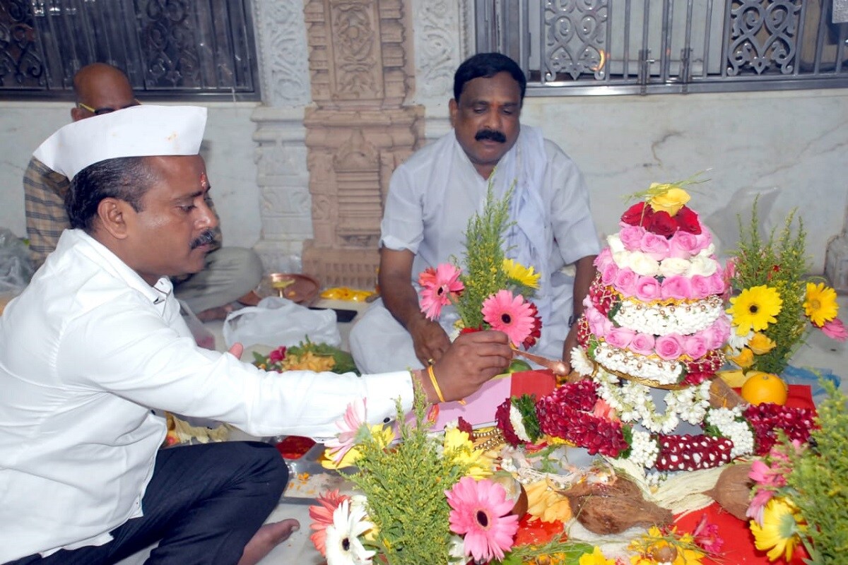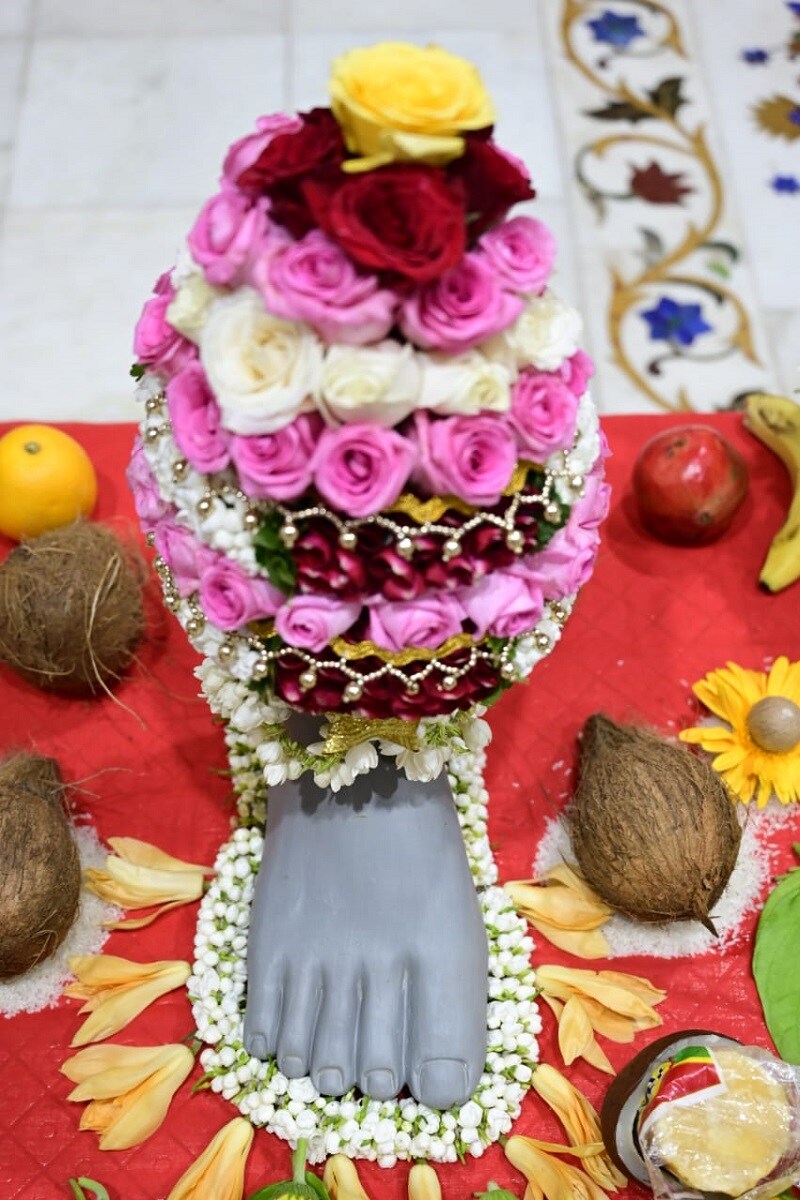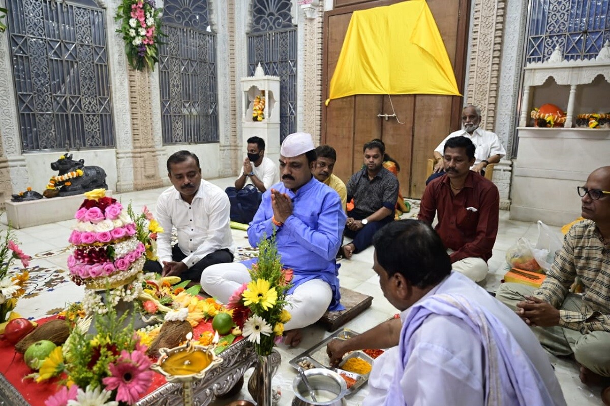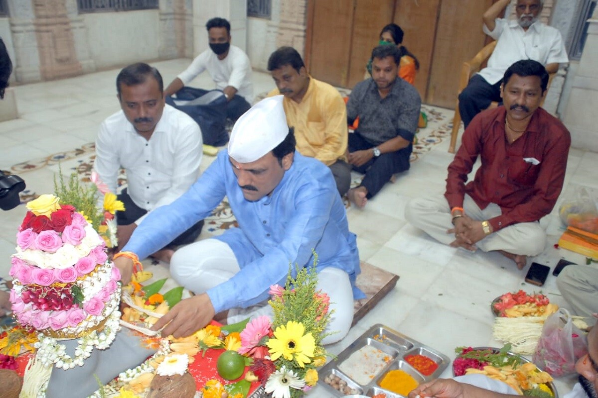 कोविड 19 संसर्ग निर्बंधांमुळे अत्यंत साधेपणाने आणि सुरक्षितपणे हा पाद्यपूजन सोहळा पार पडला. (lalbaugcha raja 2021)