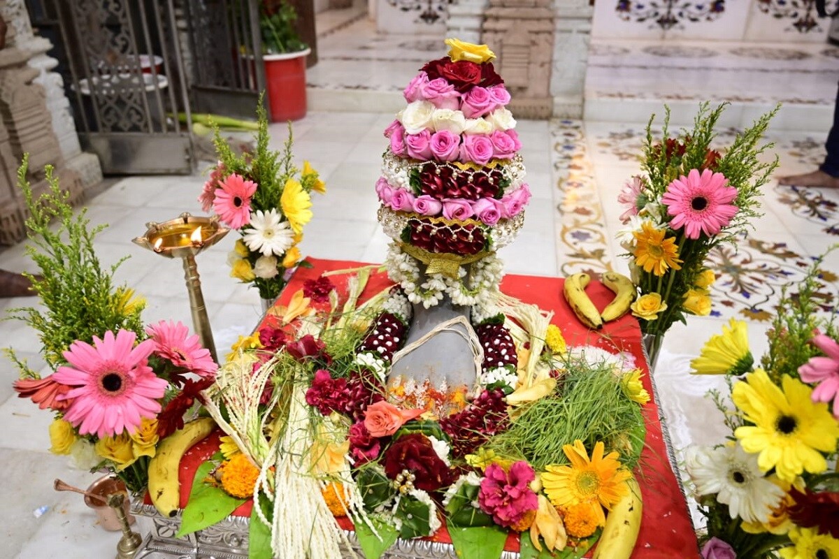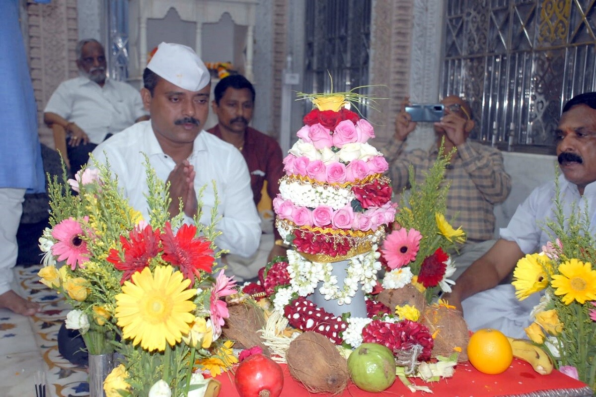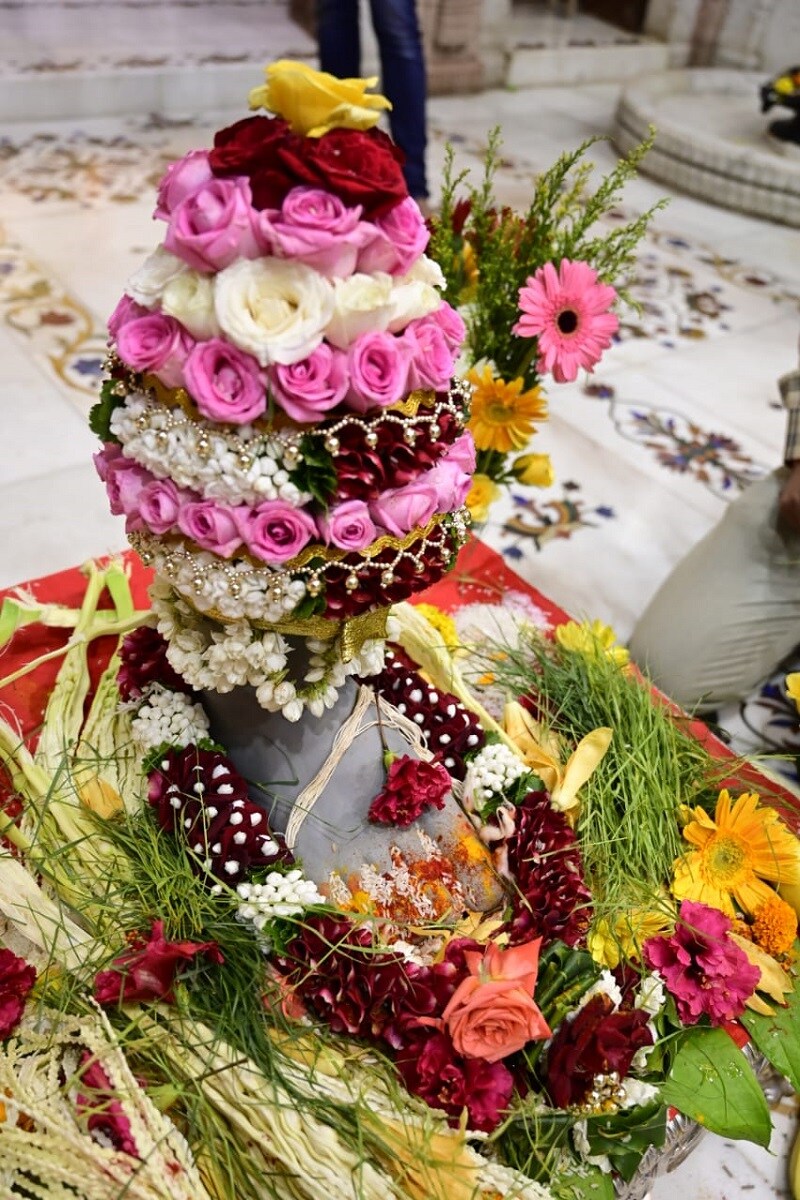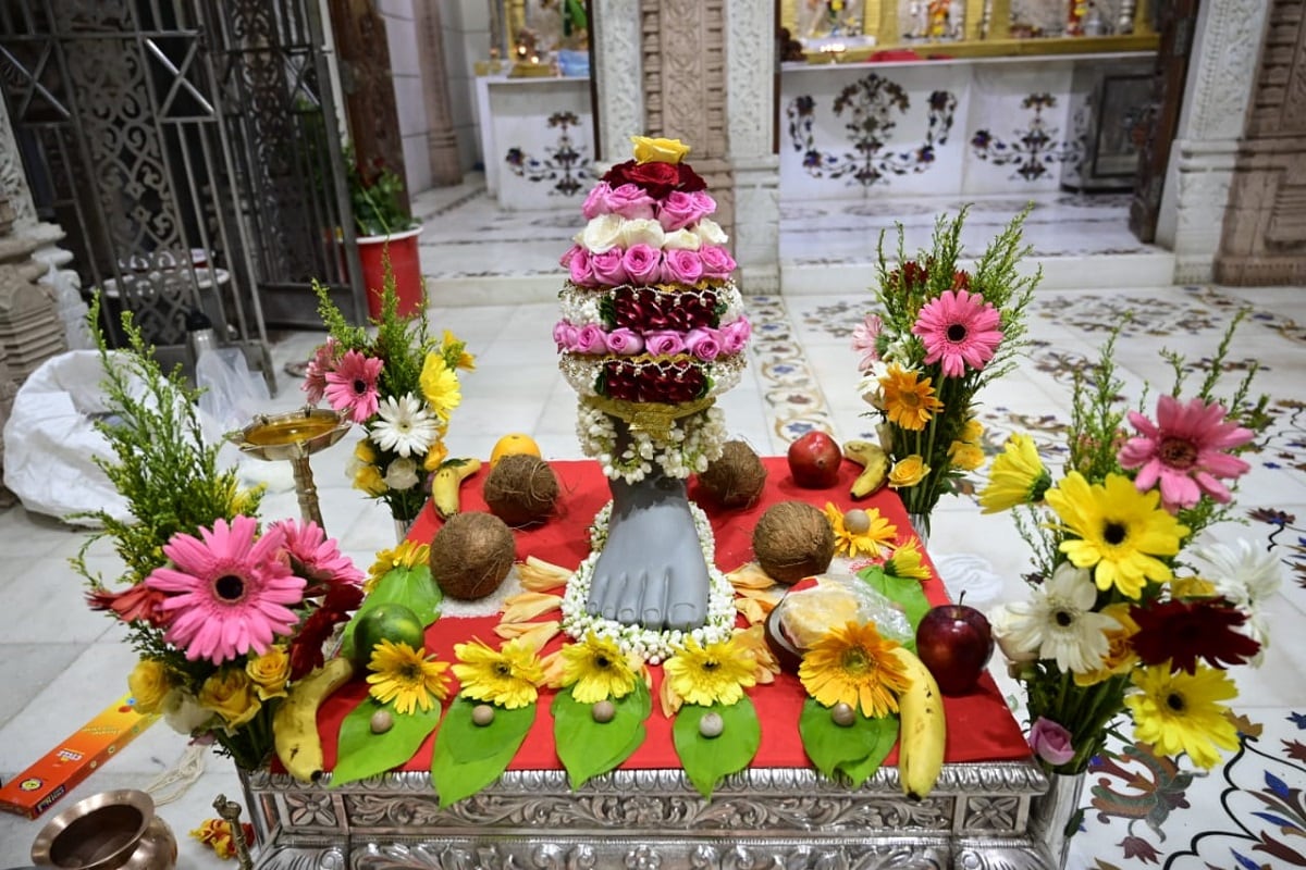 कोविड 19 संसर्ग निर्बंधांमुळे अत्यंत साधेपणाने आणि सुरक्षितपणे हा पाद्यपूजन सोहळा पार पडला. (lalbaugcha raja 2021)