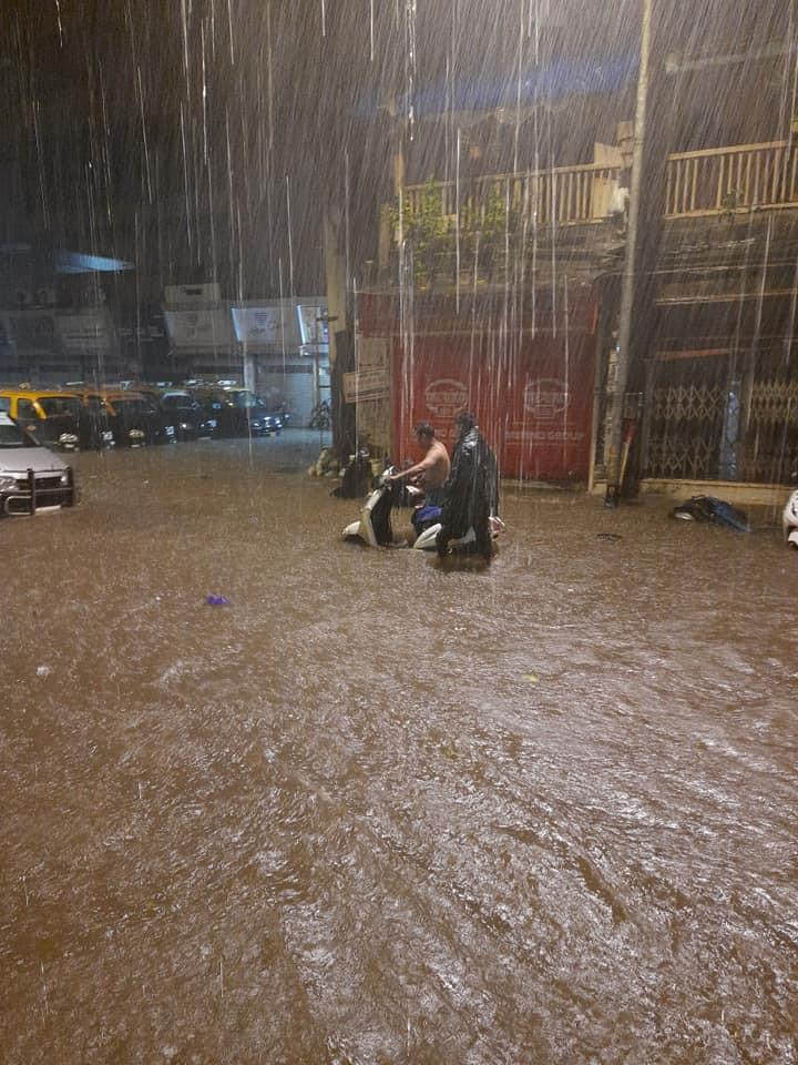 रात्रभर मुंबई-ठाणे, नवी मुंबईसह उपनगरांमध्ये पावसाचं धुमशान सुरू आहे. मुसळधार पावसाने अख्खी मुंबई पाण्याखाली गेली आहे. (Credit: twitter)