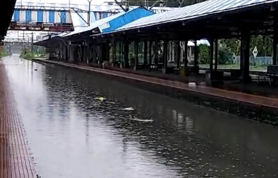 मुंबईत दादर-कुर्ला आणि कुर्ला ते मस्जिद बंदर रेल्वे स्थानकात मोठ्या प्रमाणात पाणी साचल्यानं लोकलच्या 4 सेवा विस्कळीत झाल्या आहेत. (Credit: twitter)