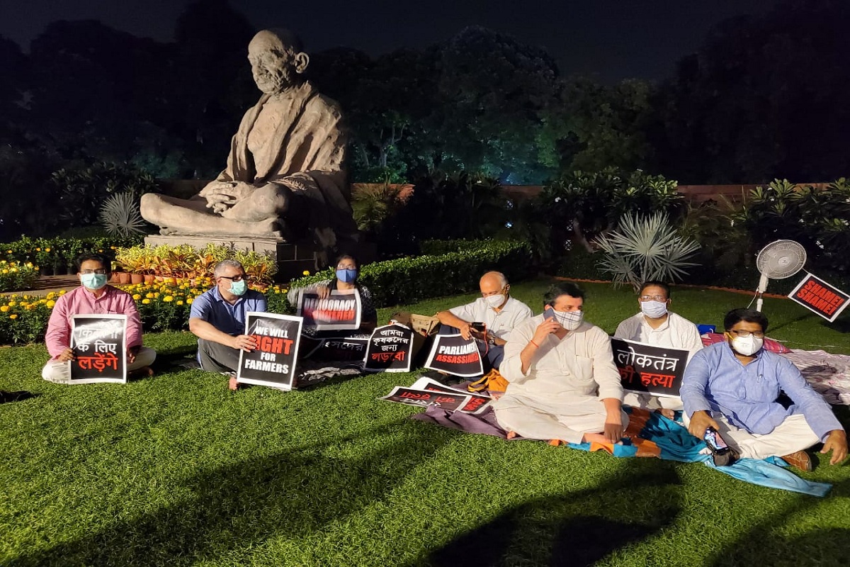 नवी दिल्ली 21 सप्टेंबर: कृषी विधेयकाच्या चर्चेच्या वेळी राज्यसभेत प्रचंड गदारोळ झाला होता. त्या गदारोळाला जबाबदार असल्याच्या कारणावरून विविध पक्षांच्या 8 खासदारांना काही दिवसांसाठी निलंबित करण्यात आलं होतं. त्या विरोधात हे खासदार संसदेच्या आवारातच निलंबनाला बसले आहेत. महात्मा गांधी यांच्या पुतळ्याजवळ या खासदारांनी सकाळपासूनच ठिय्या ठोकला असून रात्री तिथेच मुक्काम करणार असल्याचं त्यांनी म्हटलं आहे. डेरेक ओब्रायन, दोला सेन (तृणमूल), राजीव सातव, रिपून बोरा, सईद नासीर हुसेन (काँग्रेस), संजय सिंह (आप), के.के. रागेश, इल्लामारम करीम (CPI-M) या आठ खासदारांवर निलंबनाची कारवाई करण्यात आली आहे. ही कारवाई म्हणजे मुस्कटदाबी असल्याची टीका या खासदारांनी केली आहे. सरकार आवज दडपण्याचा प्रयत्न करत असल्याचा आरोपही या खासदारांनी केला आहे. BIG NEWS: रब्बी पिकांच्या MSPमध्ये वाढ, मोदी सरकारचा मोठा निर्णय राज्यसभेत त्या दिवशी मार्शल नसते तर सभापतींनाच धक्काबुक्की झाली असती असं मत सोमवारी केंद्रीय मंत्री रवीशंकर प्रसाद यांनी व्यक्त केलं होतं. काय होतोय विधेयकाला विरोध? या विधेयकाला देशभरातून मोठा विरोध होण्याचं मुख्य कारण म्हणजे, हा नवीन कायदा लागू झाल्यास कृषी क्षेत्र भांडवलदारांच्या हातात जाण्याची भीती व्यक्त करण्यात येत आहे. या कायद्यामुळे शेतकऱ्यांचं मोठं नुकसान होणार, हमीभावाती पद्धत देखील संपुष्टात येईल. त्याचबरोबर शेतकऱ्यांना योग्य भाव मिळणार नसल्याची भीती देखील व्यक्त केली जात आहे. पहिल्यांच समोर आलं भारतात मोठ्या प्रमाणात वाढणाऱ्या कोरोना रुग्णांमागचं कारण त्याचबरोबर कमिशन एजंटचं कमिशन बुडणार असल्याची भीती एजंटांनी व्यक्त केली आहे. पंजाबमध्ये जवळपास 12 लाख शेतकरी कुटुंब असून सर्वांनाच याचा फटका बसणार आहे. नव्या कृषी विधेयकाविरोधात प्रामुख्याने तीन राज्यातील शेतकरी रस्त्यावर उतरले आहेत. त्यात पंजाबचा समावेश आहे.