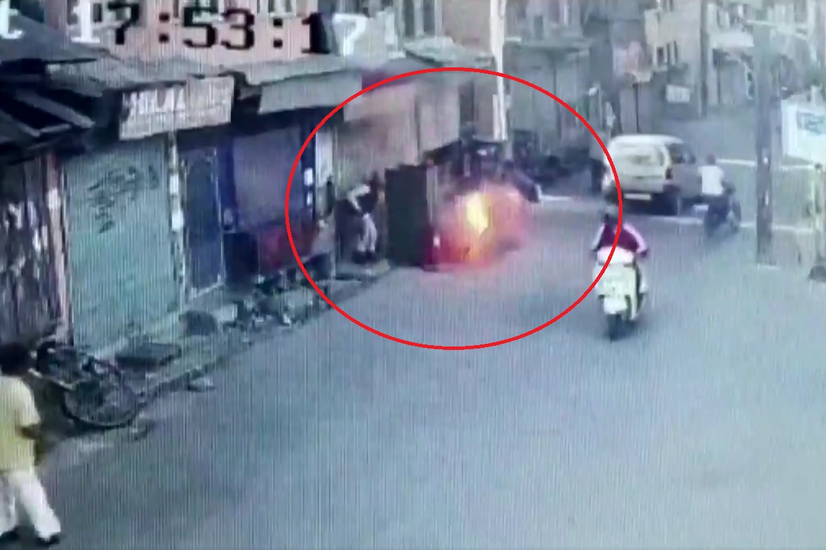 #WATCH| Jammu and Kashmir: CCTV footage of the grenade attack on CRPF party that left three civilians injured at Barbar Shah in Srinagar, earlier today pic.twitter.com/7aJ3D0VqpD