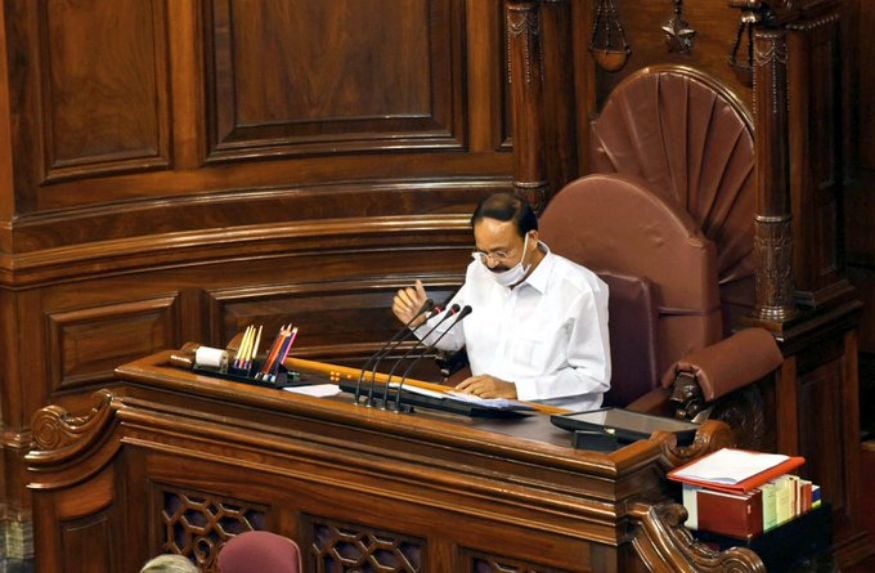साज्यसभेचे सभापती व्यंकय्या नायडू यांनीसुद्धा मास्क लावूनच काम पाहिलं.