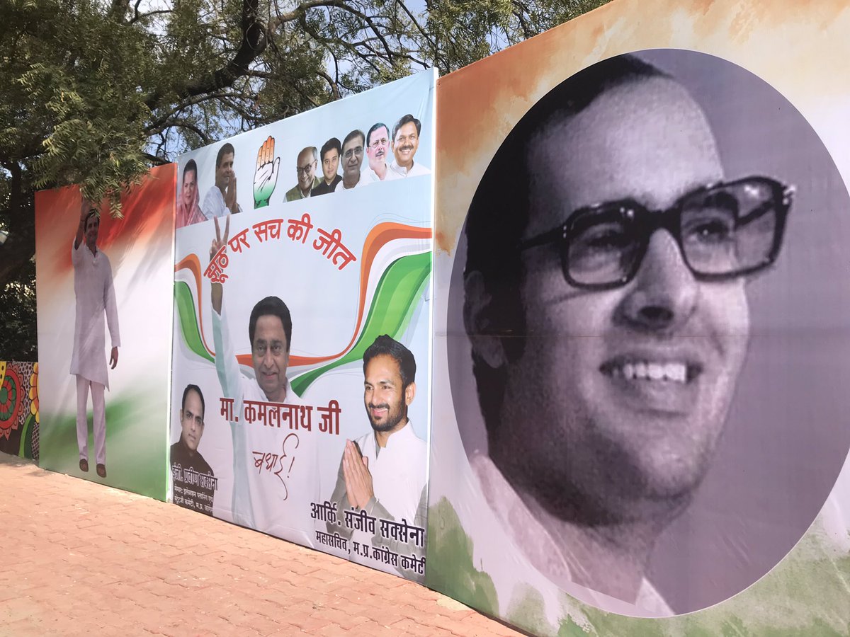 कमलनाथ यांच्या शपथविधीप्रमाणेच राज्यातील अनेक ठिकाणी झळकत असलेले संजय गांधींचे पोस्टर्सदेखील मध्य प्रदेशात चर्चेचा विषय झाला आहे.