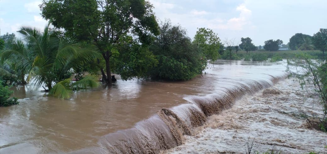 ही भीषण परिस्थिती मालेगावमधली आहे. सलग दोन दिवस झालेल्या अतिवृष्टीमुळे मालेगाव तालुक्यातील वळवाडे भागात असलेला कमलदरा बंधारा फुटला.