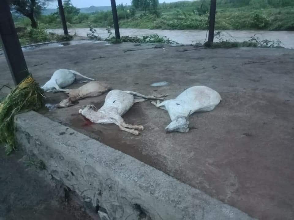 पाण्याचा प्रवाह जास्त असल्यामुळे यामध्ये 4 म्हशी आणि 12 शेळ्याचा मृत्यू झाला आहे.