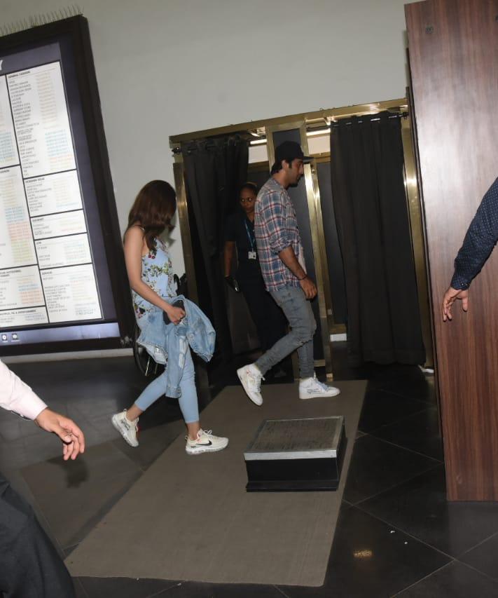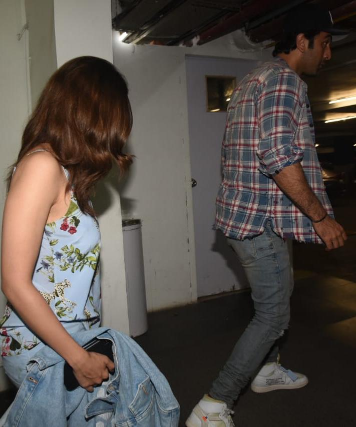 लोअर परेल येथील थिएटरमध्ये दोघांना पाहण्यात आलं. यावेळी आलियाने फिकट निळ्या रंगाचा स्लिवलेस टॉप आणि जीन्स घातली होती. तर रणबीरही नेहमीप्रमाणे कॅज्युअलमध्येच दिसत होता. रणबीरने चेक्सचं शर्ट आणि निळ्या रंगाची डेनिम घातली होती.
