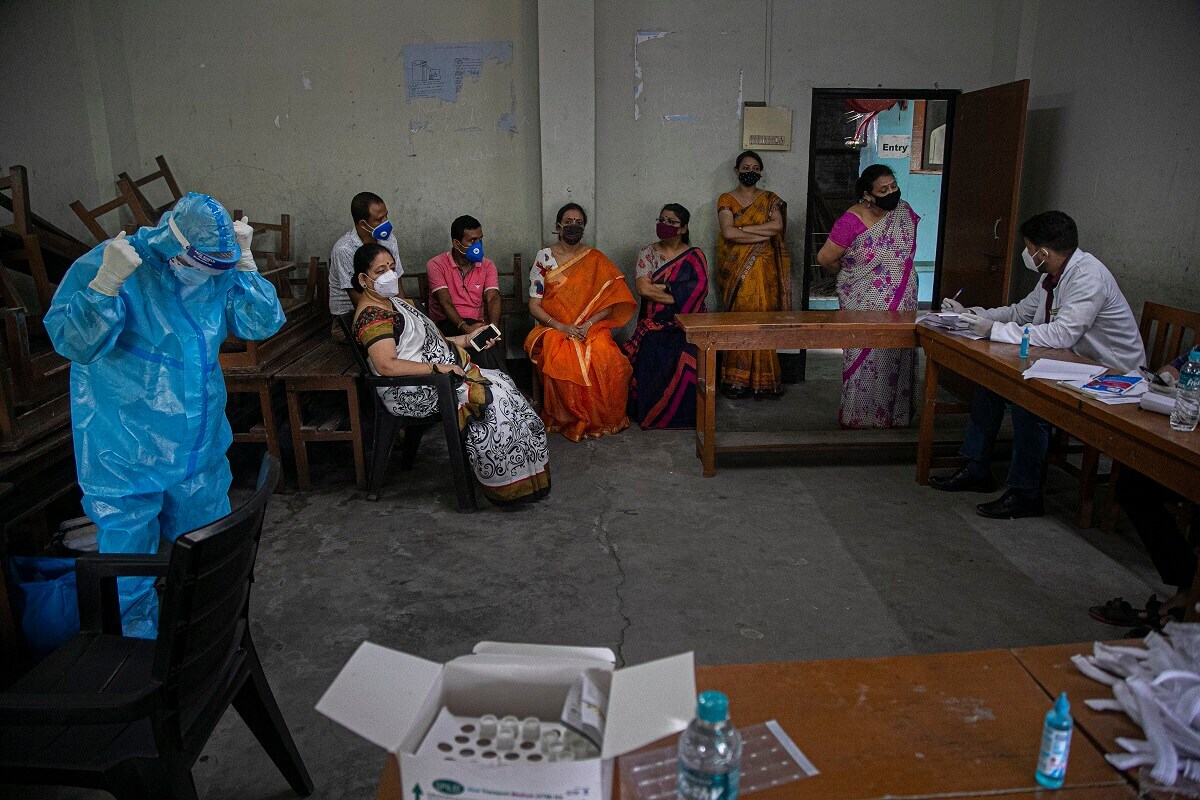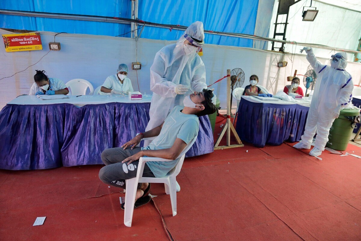 आंध्र प्रदेश, बिहार, केरळ, तामिळनाडू, पश्चिम बंगाल या ठिकाणी रुग्णावाढीमध्ये घट झाली आहे. महाराष्ट्रात गेल्या 24 तासांत 19,200 नवीन प्रकरणे नोंदली गेली. (AP Photo/Ajit Solanki)
