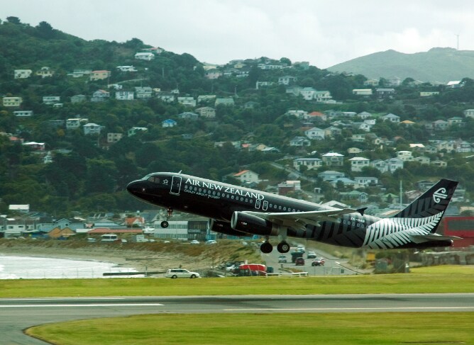 न्यूझिलंटचा वेलिंग्टन एअरपोर्टसुद्धा समुद्राच्या मधोमध आहे. सिंगल लेन रन वे आहे. त्यामुळे योग्य अंदाजाने विमान खाली उतरवावं लागतं. एकदा उतरल्यानंतर विमान वळवायला बिलकुल जागा नाही. त्यातच समुद्रातच असल्याने तुफान वारा नित्याचाच असतो.