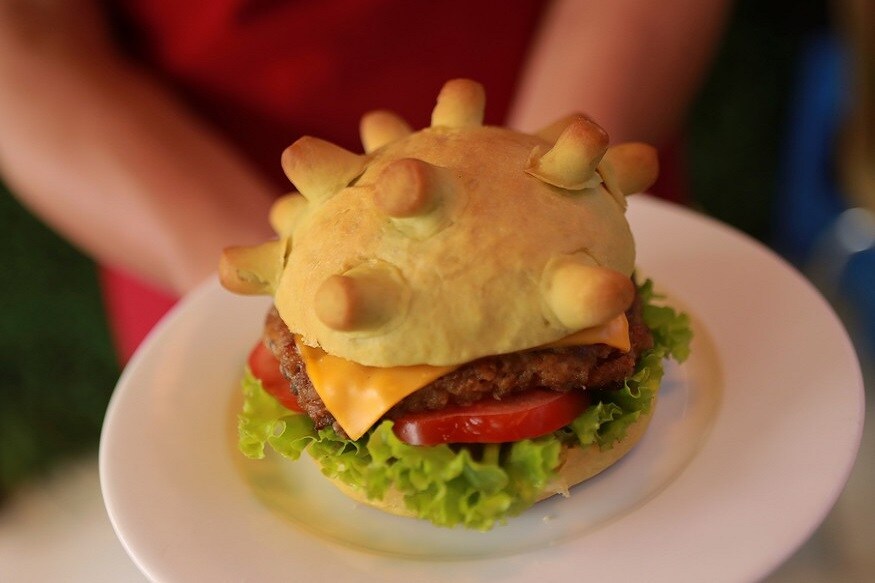 तर व्हिएतनामध्ये कोरोना बर्गर तयार करण्यात आला होता. ज्यामध्ये सामान्य बर्गरप्रमाणेच सामग्री वापरली होती. मात्र बर्गरसाठी वापरण्यात येणाऱ्या बनचा आकार कोरोनासारखा ठेवण्यात आला. (Image: AP)