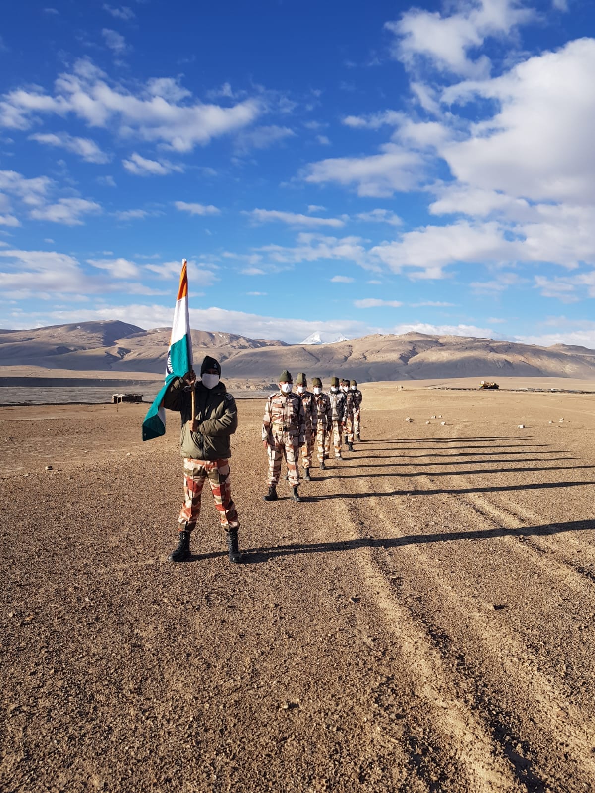 आज आपल्या देशाचा 74 व्या स्वातंत्र्यदिन. कोरोनाच्या संकटाशी सामना करत यंदाचा स्वातंत्र्य दिन सोहळा साजरा केला जात आहे. इंडो-तिबेट सीमा पोलीस (आयटीबीपी) जवानांनी स्वातंत्र्य दिन साजरा केला आहे. लडाखमध्ये 17,000 फूट उंचीवर तिरंगा झेंडा फडकावून जवानांनी स्वातंत्र्य दिन साजरा केला. अत्यंत प्रतिकुल परिस्थितीत भारतीय जवान इंडो तिबेड सीमेवर आपले कर्तृव्य बजावत असतात. यंदाच्या स्वातंत्र्य दिनावर कोरोनाचं सावट असल्याचं पाहायला मिळत आहे. लडाखमध्ये जवानांनी सोशल डिस्टन्सिंग पाळत झेंडा फडकावला आहे. जवानांनी मास्क घालून कोरोनाशी लढ्याबद्दल संदेश दिला आहे.
