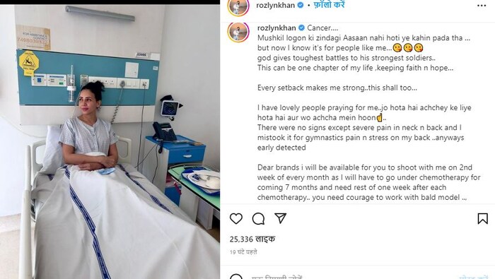 रोजलिन खानने तिच्या पोस्टमध्ये लिहिले आहे "कर्करोग... कठीण लोकांचे जीवन सोपे नसते हे कुठेतरी वाचले होते. पण आता मला माहित आहे की हे माझ्यासारख्या लोकांसाठी आहे...".