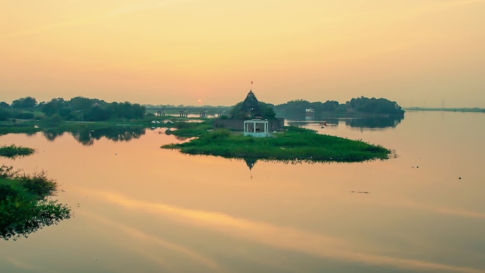 त्रिवेणी संगम असलेल्या नद्यांची नयनरम्य दृश्य कॅमेऱ्यातून टिपली आहेत. नदीचं विस्तारलेलं रूप आणि हिरवाईने नटलेला परिसराचे विहंगम दृश्य नजरेला भुरळ घालणारं आहे.