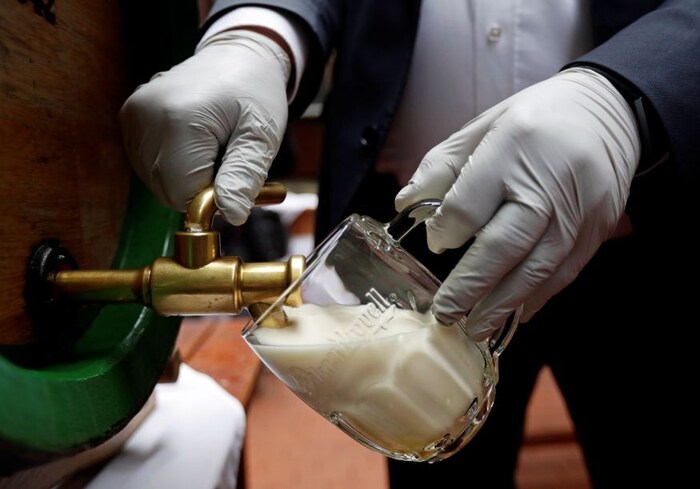 पबमध्येही अशीच काळजी घेतली जाते आहे. युरोपच्या चेक रिपब्लिक देशातील हा पब आहे. जिथं पब मॅनेजर हातात ग्लोव्हज घालून बिअरचा ग्लास भरताना दिसतो आहे. (फोटो - रॉयटर्स)