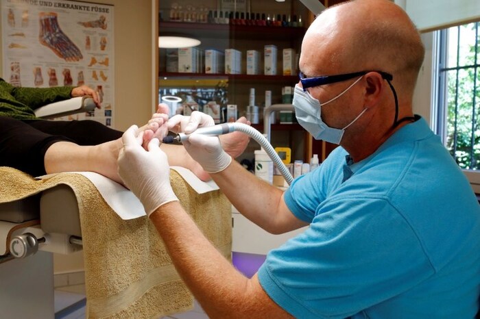 हे चित्र स्वित्झर्लंंडमधील आहे. जिथं पोडियाट्रिस्टनेही मास्क घातल्याचं दिसतं आहे. हे स्वित्झर्लंडमधील तारा वेल वेलनेस सेंटर आहे. (फोटो - रॉयटर्स)