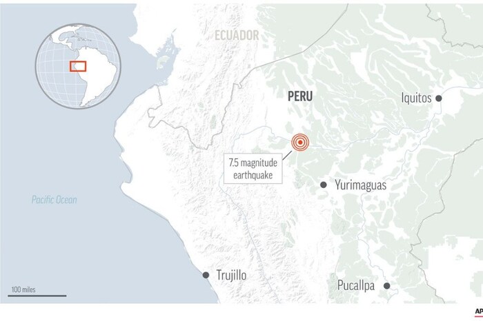 पेरू देशाच्या उत्तरेत 7.5 रिश्टर स्केलचा तीव्र भूकंप झाला. अमेरिकेच्या भूगर्भ सर्व्हेक्षण विभागानं याची माहिती दिली आहे. स्थानिक वेळेनुसार सकाळी पाच वाजून 52 मिनिटांनी भूकंपाचे धक्के जाणवले. यामुळे अनेक घरांना तडे गेले असून रस्त्यांनाही ठिकठिकाणी भेगा पडल्या आहेत.