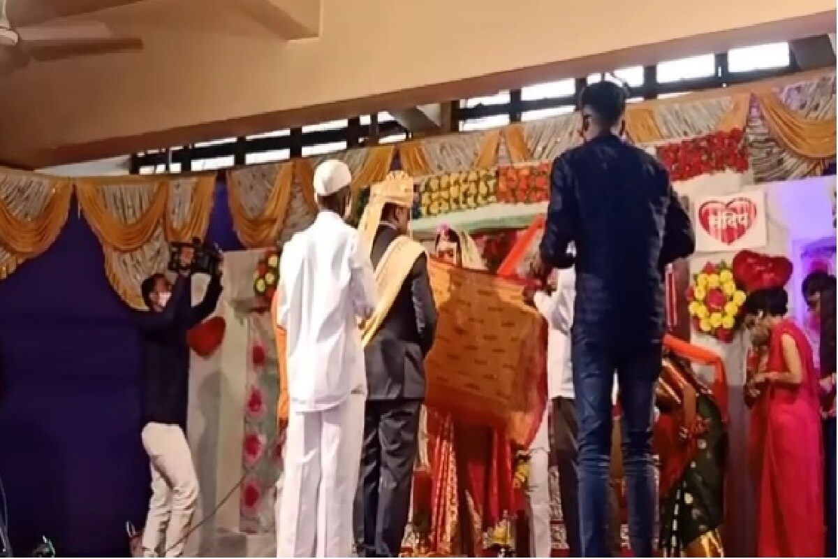 लग्नाच्या बोहल्यावर चढण्यापूर्वी अजित पवारांच्या वाढदिवसाचा केक कापून, त्यांना शुभेच्छा देऊन आणि त्यांच्या विजयाच्या घोषणा देऊन मगच वर आणि वधू बोहल्यावर चढले