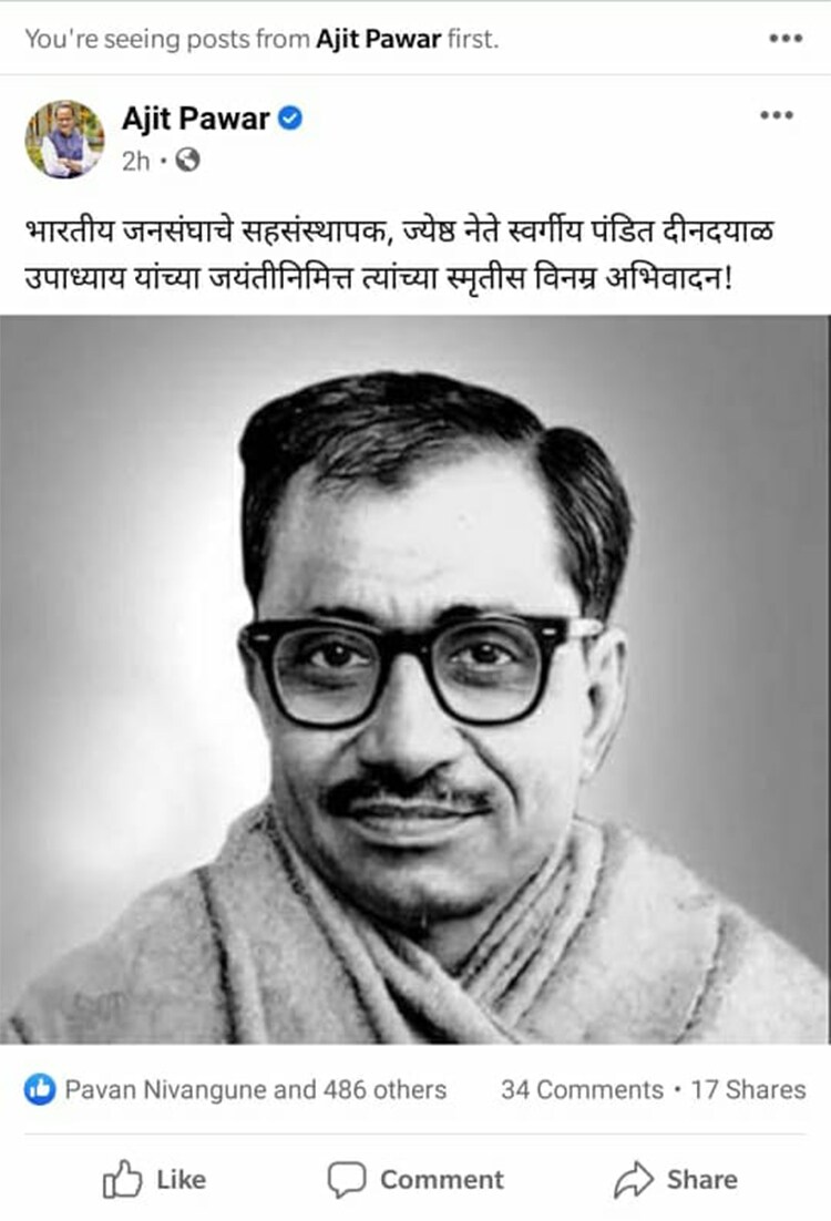 पुणे, 25 सप्टेंबर: राज्याचे उपमुख्यमंत्री अजित पवार यांनी शुक्रवारी पहाटे सहा वाजता पुणे मेट्रोच्या प्रत्यक्ष कामाच्या पाहाणी केली. कामांची पाहाणी करताना मेट्रोचं काम वेळेत पूर्ण करा, अशा सूचना देखील त्यांनी यंत्रणेला दिल्या. त्यानंतर अजित पवार यांनी भारतीय जनसंघाचे सहसंस्थापक आणि ज्येष्ठ नेते स्वर्गीय पंडित दीनदयाळ उपाध्याय यांच्या जयंतीनिमित्त त्यांच्या स्मृती जागवणारे ट्वीट केलं. मात्र, काही वेळातच अजित पवार यांनी संबंधित ट्वीट डिलीट केलं. यावरून राजकारणात जोरदार चर्चा रंगली आहे. हेही वाचा…