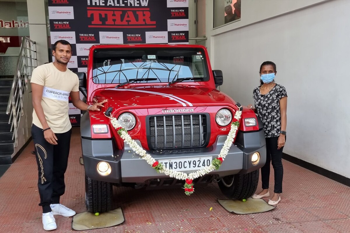 नटराजन याने सोशल मीडियावर एक फोटो शेयर केला आणि आनंद महिंद्रा (Anand Mahindra) यांनी आपल्याला एसयूव्ही थार गिफ्ट दिल्याची माहिती दिली. नटराजन याने याबद्दल आनंद महिंद्रा यांना स्वत: सही केलेली गाबा टेस्टमध्ये वापलेली जर्सी रिटर्न गिफ्ट म्हणून दिली आहे.
