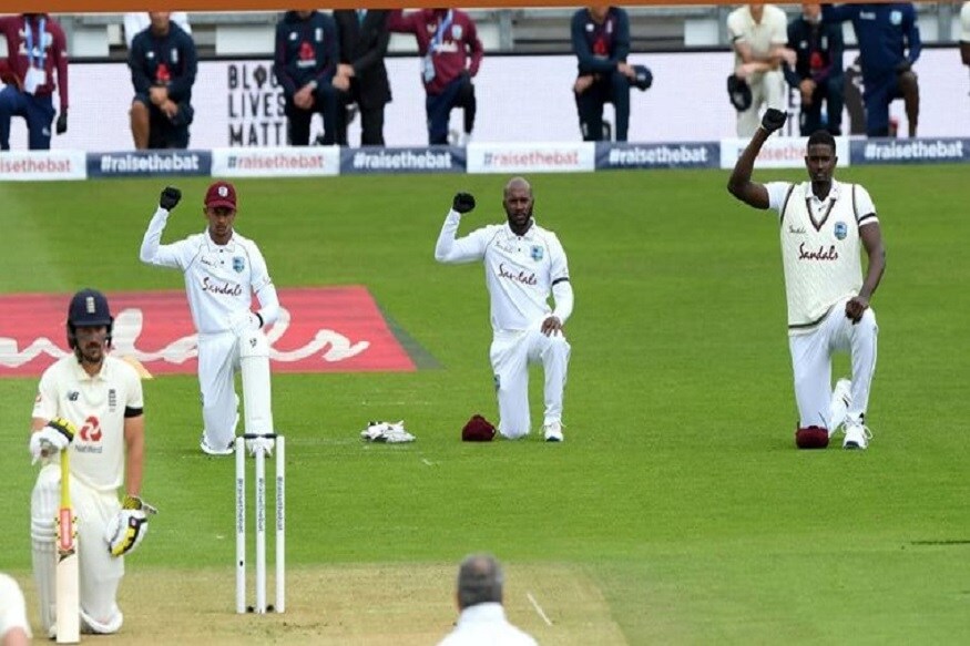 या सामन्यात मात्र एक वेगळंच चित्र पाहायला मिळालं. सामना सुरू होण्याआधीच इंग्लड-वेस्ट इंडिजच्या खेळाडूंची गुडघे टेकले. याचे कारण म्हणजे अमेरिकेत कृष्णवर्णीय व्यक्तीचा झालेला मृत्यू. यानंतर जगभरात ब्लॅक लाईफ मॅटर (Black Lives Matter) मोहिमेस सुरुवात झाली.