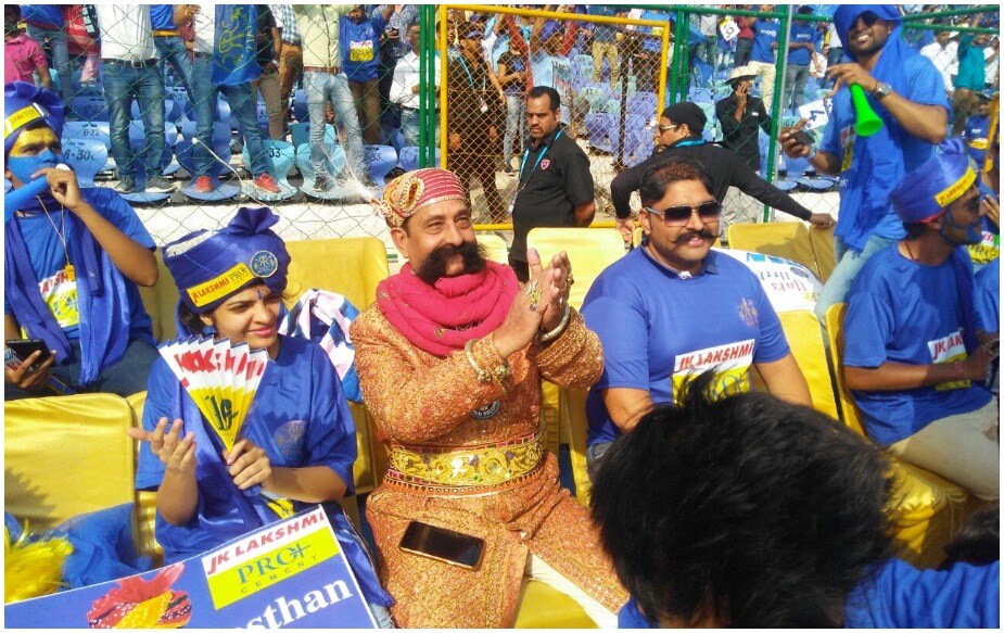राजस्थान सरकारच्या पर्यटन विभागात राम सिंह चौहान काम करतात. रविवारी ते राजेशाही पोषाख घालून आपल्या 14 फूट लांबीच्या मिशांना त्यांनी लाल रंगाच्या कपड्यात गुडांळले होते. असा पेहराव घालून त्यांनी राजस्थान संघाला प्रोत्साहीत केलं आहे. राम सिंह 30 वर्षांपासून त्यांच्या मिशाना वाढवत आहेत, मिशा वाढवण्याचे प्रोत्साहन त्यानां राजस्थानच्याच कर्णभील नावाच्या व्यक्ती कडून मिळाले आहे.