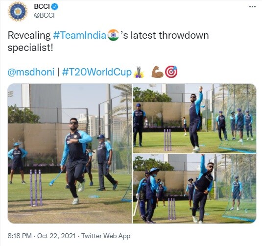 महेंद्रसिंह धोनीनं नेटमध्ये थ्रो डाऊन स्पेशालिस्टची भूमिका देखील पार पाडली. धोनीनं थ्रो डाऊन स्पेशालिस्ट राघवेंद्र, नुवान आणि दयानंद यांना मदत केली.