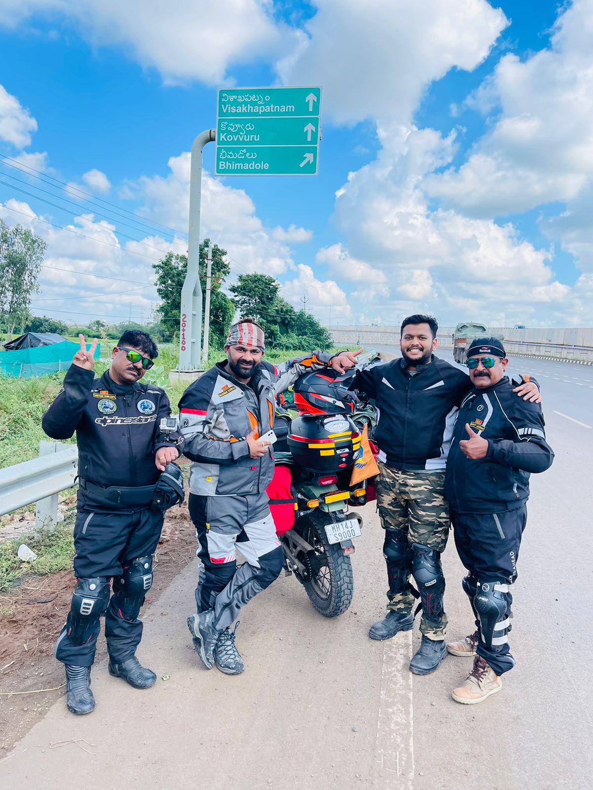 अथर्वने व्हिडिओ कॉल करून आईसाठी मनपसंत साड्या खरेदी केल्या. गजाभाऊ नेही तीच पद्धत वापरून घरच्यांसाठी खरेदी केली. भरत सरांनी सीनियर पोलीस इन्स्पेक्टर असलेल्या आपल्या पत्नीसाठी फोन वर बोलून पसंतीची साडी आली घेतली. माझी एनिवर्सरी 22 नोव्हेंबर ला असते त्याचे औचित्य साधून अजून एक सुंदर साडी माझ्या बेटर हाफ साठी घेऊन कुरियरने मी पाठवून दिली आणि आश्चर्य म्हणजे बरोबर 22 नोव्हेंबर रोजी ती पुण्याला घरी पोहोच झाली, थोडीफार नाराज झालेली माझी बायको सरप्राईज मिळाल्यावर नक्कीच खुश झाली असणार यात शंका नाही. आज आम्हाला आंध्र प्रदेशातील विजयवाडा गाठायचे होते, आजचा टप्पा साधारण चारशे पन्नास किलोमीटरचा होता. हायवे चांगला होता, नेल्लोर, ओंगोले, गुंटूर ही महत्त्वाची शहरे एकापाठोपाठ मागे टाकून आम्ही विजयवाडाला पोहोचलो. हायवेवरील नदीवरील एक पूल पूर्णपणे खचल्याने आणि पाण्याखाली गेल्याने संपूर्ण हायवेवरील वाहतूक जवळपास ठप्प झाली होती. ट्रक ड्रायव्हर यांच्याशी बोलताना अधिक माहिती मिळाली साधारणत ते पन्नास किलोमीटर असेच ट्राफिक जाम आहे, ट्रकच्या लांबच लांब रांगा लागलेल्या आहेत, जाणारा रस्ता पूर्णपणे ब्लॉक आहे अशी माहिती मिळाली. समोरून अधुन-मधुन एखाददुसरे वाहन येताना दिसे. दुचाकीला जायला जागा नाही ते पण पन्नास किलोमीटर, काय करावे मोठा प्रश्न समोर उभा राहिला. पोलिसांची संवाद साधला त्यांनी सांगितले रस्त्याने सरळ पुढे जाता येणार नाही, तुम्ही रस्त्याच्या दुसऱ्या बाजूने सावकाश वाहने चालवत जात राहा, आम्ही त्यांचे आभार मानले आणि रस्ता दुभाजक ओलांडून वरून पलिकडील रस्त्याच्या लेन वरून गाडी चालू लागलो, समोरून अचानक वाहने येत होती, आमच्या गाड्यांचे दिवे आम्ही दिवसाही चालू ठेवले होते, खूप सावधगिरीने गाडी चालवावी लागत होती, डावीकडील लेनमध्ये फक्त ट्राफिक मध्ये अडकलेल्या गाड्याच गाड्या दिसत होत्या. ट्रॅफिक मध्ये अडकलेले लोक हतबल झालेले दिसत होते, आम्ही मात्र आनंदी होतो आम्ही पुढे जात होतो आणि वाहनांच्या रांगा मागे मागे जात होत्या. साधारणता 65 किलोमीटर गाडी आम्ही विरुद्ध दिशेने चालवली. शेवटी तो खचलेला पाण्यात बुडालेला पूल आला. तिथे बघ्यांची प्रचंड गर्दी होती, पूल दुरुस्तीचे काम वेगाने चालू होते. आम्ही तिथे थोडा वेळ थांबून पुढच्या प्रवासाला निघालो. दुचाकी होती म्हणून मार्ग काढू शकलो. चार चाकीमध्ये असणाऱ्या लोकांचे हाल 65 किलोमीटर पाहिले होते. एका छान ढाब्यावरती जेवायला थांबलो, हायवे लगत राहण्यासाठी हॉटेल शोधले आणि आजचा विजयवाडाचा टप्पा संपला.