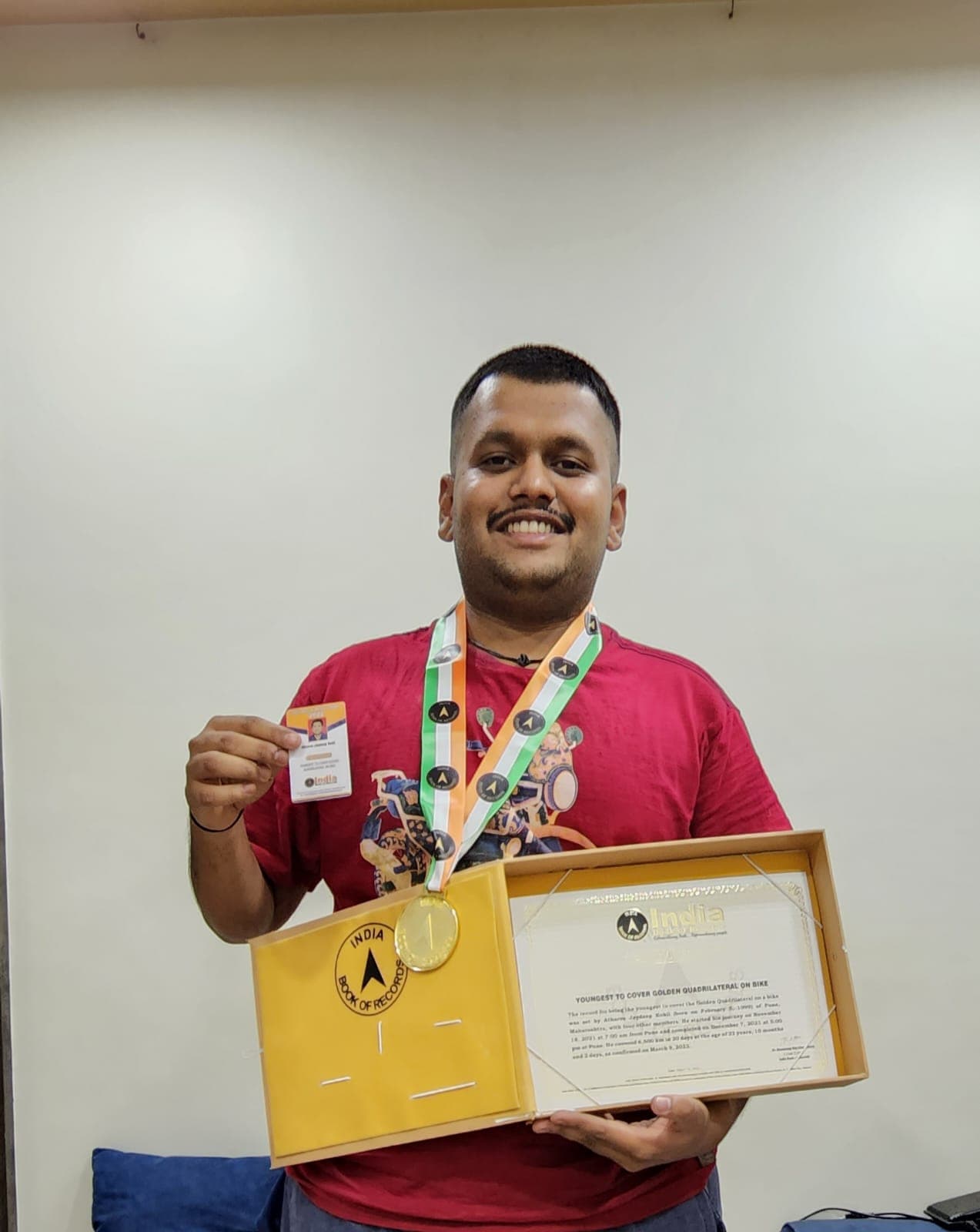 या संपूर्ण प्रवासाची इंडिया बुक ऑफ रेकॉर्ड ने दखल घेतली असून आम्हा सर्वांना इंडिया बुक ऑफ रेकॉर्ड प्रशस्तीपत्र मेडल देऊन आमचा यथोचित गौरव केला आहे. आमच्यापैकी सर्वात लहान रायडर अथर्व कोकीळ हा फक्त एकवीस वर्षाचा तरुण सुवर्ण चतुष्कोण राईड पूर्ण करणारा सर्वात तरुण ठरला आहे तसेच वयाच्या 62 व्या वर्षी चतुष्कोणची मोहीम पूर्ण करणारे भरत जाधव हे सर्वात जास्त वयाचे सुवर्ण चतुष्कोण बाईक वरून पूर्ण करणारे रायडर ठरले आहेत. आमचे आरबीपीचे सर्वेसर्वा गजानन सरकाळे सर्वात कमी बाईक रायडिंगचा अनुभव असलेले अमोल मोरे आणि आरबीपीचे आधारस्तंभ सर्वात अनुभवी रायडर संतोष होनकरपे सर्व रायडर्सने सुवर्ण चतुष्कोणची मोहीम वीस दिवसात पूर्ण करून इतिहास घडवला आहे. हा इतिहास इंडिया बुक ऑफ रेकॉर्डच्या 2023 च्या या पुस्तकामध्ये सुवर्णाक्षरांनी लिहिला जाईल. ही बुलेट राईड, खडतर प्रवास करताना आम्ही जवळपास संपूर्ण भारताला प्रदक्षिणा मारली. आमचा प्रवास नेमका कसा झाला दिवसभराच्या शेडूल काय असायचं आम्हाला रस्त्यात काय अडचणी आल्या याबद्दलचे बारकावे आपल्याशी शेअर करताना आम्हाला मनस्वी आनंद होत आहे. सुवर्ण चतुष्कोण बाईक मोहीम रात्री बारा वाजता माझ्या मोबाईलची रिंग वाजली समोरून आमचा सर्वात तरुण रायडर अथर्व बोलत होता, सर झाली का तयारी? सकाळी कात्रज उद्यानापाशी वेळेत या, लवकर निघू आपल्या उद्याचे टारगेट आठशे किलोमीटरच्या पुढे आहे. थेट बेंगलोर गाठायचे आहे. अथर्व खूप उत्साहात होता. कारण, खूप दिवसांचे आमचे स्वप्न साकार होणार होतं. ते प्रत्येक बाईक रायडरच्या बकेट लिस्टमध्ये असणारे स्वप्न. रस्त्याने जवळपास साडेसहा हजार किलोमीटरचा प्रवास करुन संपूर्ण भारताला प्रदक्षिणा घालायचं स्वप्न होतं. सुवर्ण चतुष्कोण या महामार्गावरून प्रवास करून देशाला क्लीन इंडिया ग्रीन इंडियाचा संदेश द्यायचा. म्हणतात ना स्वप्न पाहिल्या शिवाय कोणतेही स्वप्न पूर्ण होत नाही किंवा पूर्ण होत नसते. असेच एक स्वप्न आरबीपीच्या पाच शिलेदारांनी पाहिले. भारतातील चारी दिशांना असणाऱ्या मुंबई, चेन्नई, कोलकत्ता आणि दिल्ली या मेट्रो शहरांना भेटी द्यायचं, स्वप्न पाहिले आणि ते पूर्ण करण्यासाठी मैदानात उतरले नाही तर ते आरबीपीचे शिलेदार कसले? आरबीपीचे लाडके व्यक्तिमत्व गजानन सरकाळे, वय वर्ष 21 असलेला आमचा सर्वात छोटा रायडर अथर्व कोकीळ, सर्वात वडीलधारे असणारे भरत जाधव, रायडिंगचा सर्वात कमी अनुभव असलेले अमोल मोरे, सर्वात अनुभवी रायडर संतोष होनकरपे हे शिलेदार 18 नोव्हेंबर 2021 रोजी जी क्यू मोहिमेला निघाले. ठरलेल्या वेळेत मी आणि अमोल पिंपरी चिंचवड वरून कात्रजला पोहोचलो. आमच्या सगळ्या मोहिमांचे सुरुवात कात्रज चौकतूनच होते. आज आम्ह