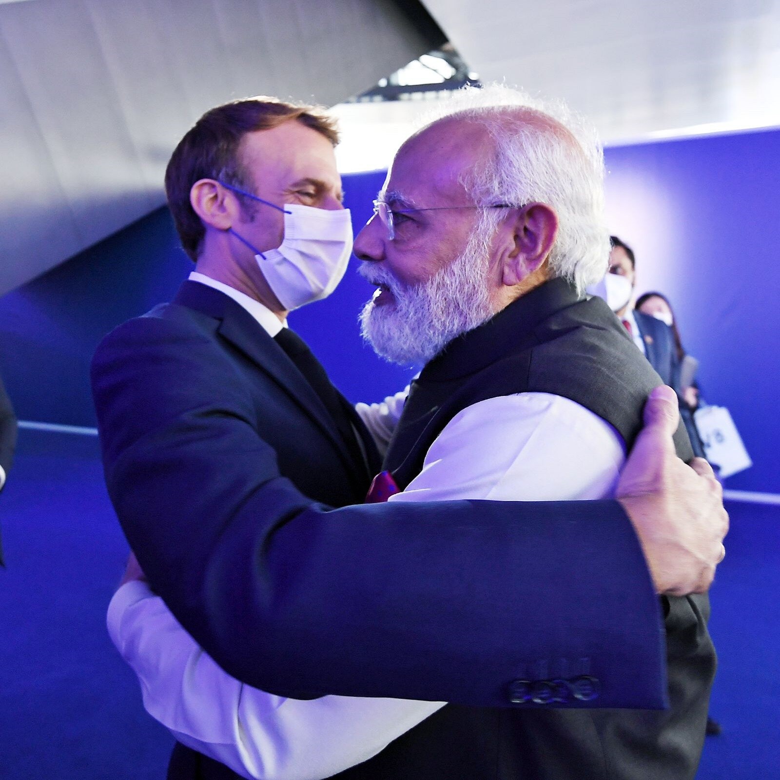फ्रान्सचे राष्ट्राध्यक्ष इमॅन्युएल मॅक्रॉन यांच्यासोबत पंतप्रधान मोदींच्या विशेष गप्पा रंगल्याचं दिसलं.
