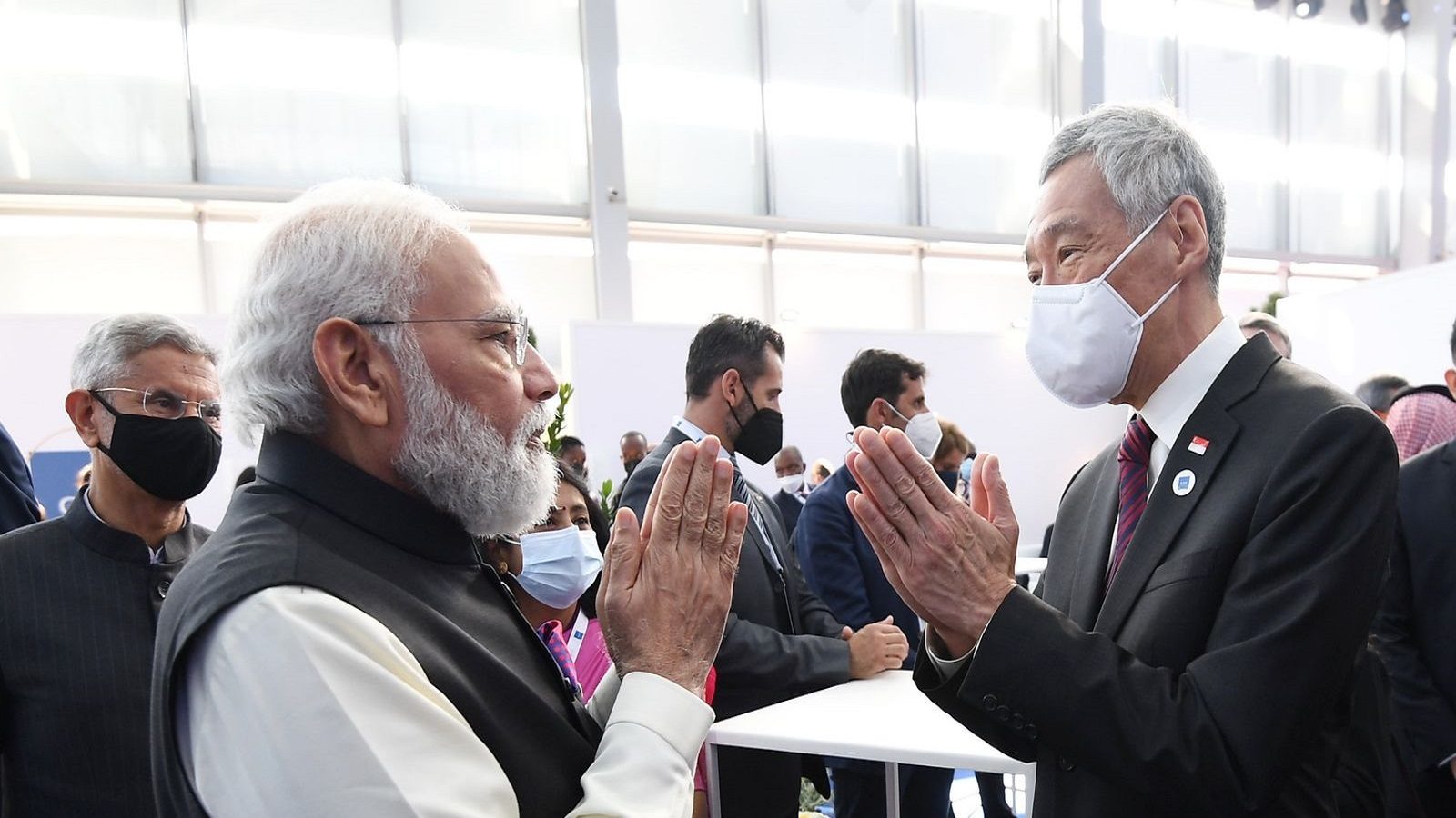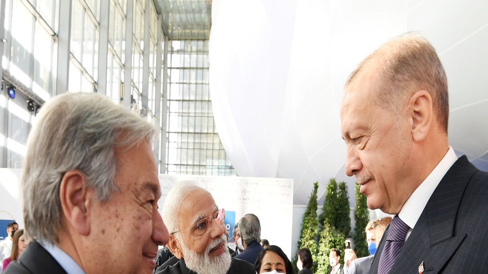 पंतप्रधान मोदी हे भारतीय पद्धथीनं हात जोडून नेत्यांना अभिवादन करताना दिसले. इतर नेत्यांनीही त्याच पद्धतीनं मोदींना प्रतिसाद दिला.