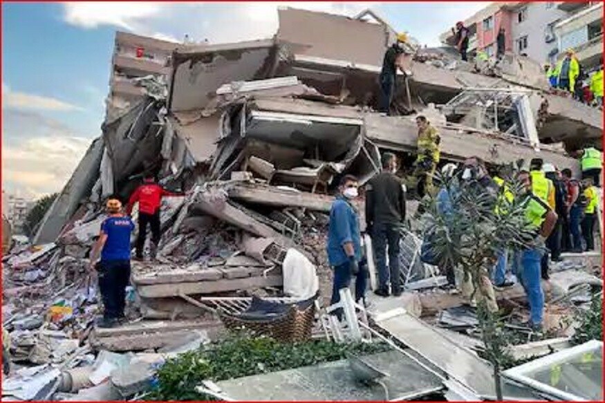 शुक्रवारी दुपारी अचानक आलेल्या भूकंपाने संपूर्ण परिसर हादरला असून, संपूर्ण इमारतच्या इमारत कोसळली आहे. (फोटो सौजन्य. AP)