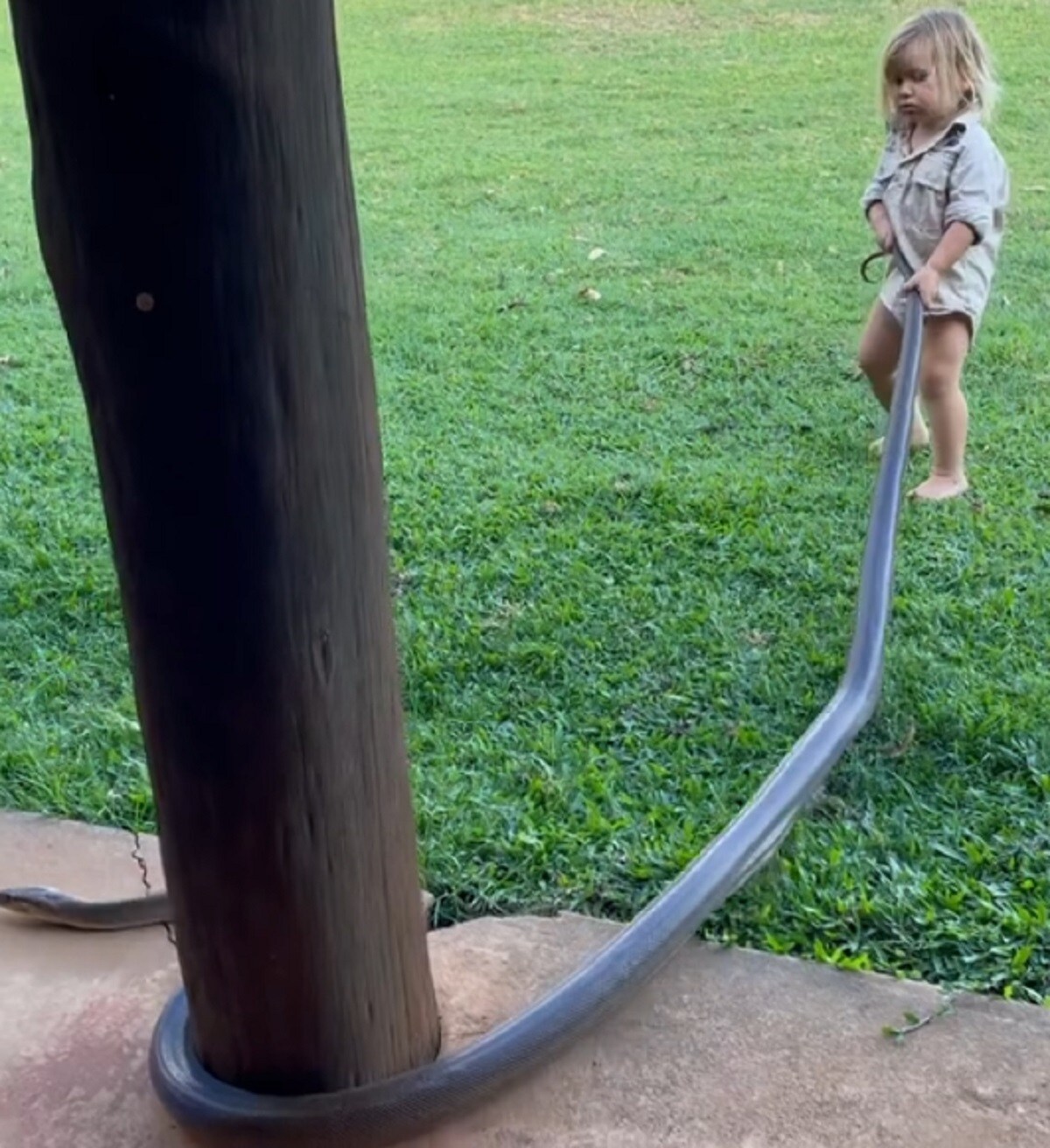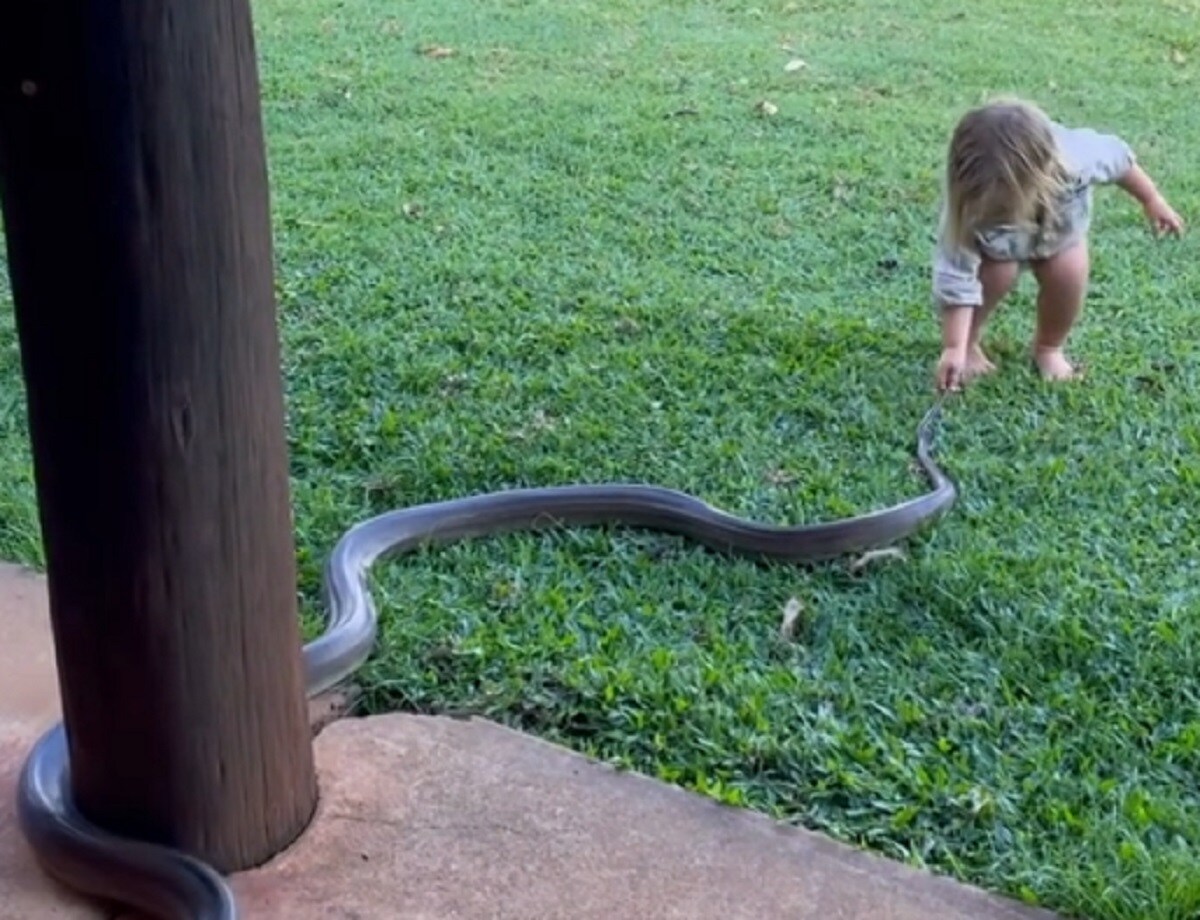 मॅट राईट यांनी स्वतः मगरी पकडण्यात प्रभुत्व मिळवले आहे आणि ते 20 वर्षांपासून नॉर्दर्न टेरिटरीमध्ये हेच काम करत आहे. ते त्यांच्या 2 वर्षांचा मुलगा बोंजो याला प्राण्यांशी निर्भयपणे वागण्याचे प्रशिक्षण देत आहे. हे बाळ बागेत खेळताना 2 मीटर लांब सापाची शेपटी खेचत आहे. हा व्हिडीओ पाहिल्यानंतर कुणाच्याही अंगावर काटा उभा राहील