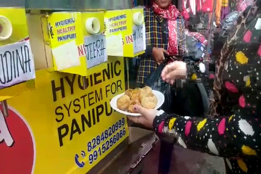 मशीनमुळे कोरोनाची भीती काही प्रमाणात कमी वाटतेय. याठिकाणी पाणीपुरी खाणं सुरक्षित वाटतं. पाणीपुरीला दुकानदार हात लावत नाही, आम्ही स्वत:चं पुरीमध्ये मशीनद्वारे हवं ते पाणी घेतो, ही अतिशय चांगली बाब, असल्यास येथील ग्राहकांनी सांगितलं आहे. (Photo: News18)
