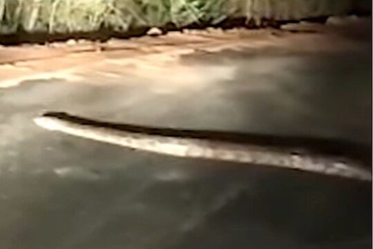 हिमाचल प्रदेश, 12 जुलै : पावसाला सुरुवात झाल्यानंतर जंगलाशेजारी भागांमध्ये साप, अजगर आदी प्राण्यांचा वावर वाढू लागतो. त्यामुळे पावसाळ्यात अशा गावांना सतर्क राहण्याचं आवाहन केलं जातं. पावसाळ्यात गावकऱ्यांना दहशतीखाली जगावं लागतं. असाच एक व्हिडीओ सध्या सोशल मीडियावर व्हायरल झाला आहे. हा व्हिडीओ पाहून तुम्ही हादराल. या व्हिडीओमध्ये तब्बल 20 फुटांचा अजगर दिसून येत आहे. हिमाचल प्रदेशातील सोलन जिल्ह्यातील रामपुर गावात रविवारी रात्री तब्बल 20 फुट लांब अजगर पाहून (20 Feet Long Python) गावकरी पुरते भयभीत झाले. सापांचा राजा अजगर हा रस्ता क्रॉस करीत होता. लोकांनी जेव्हा अजगराला रस्त्या पार करताना पाहिलं तर सर्वांनी आपल्या गाड्या थांबवल्या. अजगराला जाताना काही अडथळा येऊ नये म्हणून दोन्ही बाजूला गाड्या थांबल्या होत्या. अजगर जंगलात गेल्यानंतर गावकऱ्यांनी गाड्या सुरू केल्या व ते रस्तावरुन जाऊ लागले. इतका विशाल अजगर पाहिल्यानंतर गावकरी भयभीत झाले आहे. मात्र गावकरी आणि जंगलातील प्राण्यांमधील नातं असच काहीसं असतं. हे ही वाचा- उंदरांसाठी घरात ठेवला पिंजरा, सकाळी पाहिलं तर कुटुंबाला धक्काच बसला, पाहा VIDEO सध्या जंगल तोडून तेथे वस्ती होत आहे. अशा वेळी प्राण्यांसाठी जागा कमी पडू लागली आहे. शिवाय जंगलतोडीमुळे निसर्गावरही त्याचा दुष्परिणाम होत आहे. त्यामुळे तुम्ही जर प्राण्यांना त्रास दिला नाही तर ते तुम्हाला काही करणार नाही, असं प्राणीमित्रांकडून सांगितलं जातं. या व्हिडीओमधूनदेखील हेच दिसतं. गावकऱ्यांनी गाड्या थांबवल्यामुळे अजगर आपोआप आपल्या मार्गाने जंगलात निघून गेला.