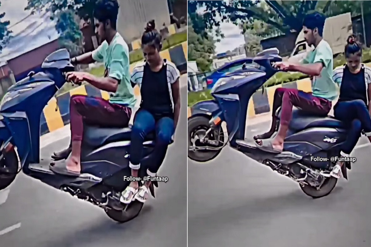 मुंबई 25 ऑगस्ट : सोशल मीडिया हे लोकांच्या मनोरंजनासाठी एक उत्तम प्लॅटफॉर्म आहे. जेथे आपल्याला वेगवेगळे व्हिडीओ पाहायला मिळतात. एक व्हिडीओ सध्या चर्चेत आहे. प्रसिद्धीसाठी लोक काय करतील याचा नेम नाही. एका तरुणाने जीवघेणा स्टंट केला आहे. स्टंट करताना हे लोक स्वत:च्या जीवाची देखील पर्वा करत नाही. सध्या एक व्हिडीओ सध्या व्हायरल होत आहे. ज्यामध्ये एक तरुण आणि तरुणी गाडीवर बसून धक्कादायक प्रकार करत आहेत. जे करणं त्यांच्या जीवावर देखील बेतू शकतं. नक्की असं काय केलं? या प्रियकराने आपल्या आपल्या स्कुटीच्या मागे आपल्या प्रेयसीला बसवलं आहे आणि तो रस्त्यावर स्टंटबाजी करत आहे. या प्रियकराने स्कूटी चालवताना अचानक पुढचं चाक उललं आणि फक्त मागच्या चाकावर तो स्कूटी चालू लागला. आश्चर्याची गोष्ट म्हणजे या प्रियकराच्या मागे त्याची प्रेयसी बसली होती. तसे पाहाता ही तरुणी देखील घाबरली होती, परंतु तरी देखील ती या स्टंटचा आनंद घेत होती. हे वाचा : Love story : शेजारी बसली आणि बनली गर्लफ्रेंड; कपलची ‘बसवाली लव्ह स्टोरी’ चर्चेत नशीबाने या जोडप्यासोबत कोणतीही अप्रिय घटना घडली नाही, परंतू विचार करा की जर त्यांचा तोल गेला असता, तर हा स्टंट त्यांना किती महागात पडला असता.